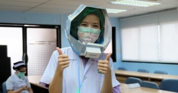 9 สิงหาคม 2564 นาโนเทค สวทช. ดร. วรรณี ฉินศิริกุล ผู้อำนวยการศูนย์นาโนเทคโนโลยีแห่งชาติ ดร.วิไลพร เจตนจันทร์ กรรมการบริหารศูนย์นาโนเทคโนโลยีแห่งชาติ และดร.ไพศาล ขันชัยทิศ พร้อมทีมวิจัยเข็มระดับนาโน ส่งมอบผลงาน “nSPHERE Pressurized Helmet” หมวกควบคุมแรงดันบวกและลบ ให้กับโรงพยาบาลจุฬาภรณ์ ราชวิทยาลัยจุฬาภรณ์ โดยมี ศ. นพ. นิธิ มหานนท์ เลขาธิการราชวิทยาลัยจุฬาภรณ์ และผู้อำนวยการโรงพยาบาลจุฬาภรณ์ พญ. นงนิด เจริญงามเสมอ ผู้ช่วยผู้อำนวยการด้านเภสัชกรรมและเวชภัณฑ์กลางกับเครื่องมือแพทย์ และ พล.ต. ธนพัฒน์ โชคดารา หัวหน้าฝ่ายกฎหมายประจำสำนักเลขาธิการราชวิทยาลัยจุฬาภรณ์ เป็นผู้รับมอบ ณ สำนักงานราชวิทยาลัยจุฬาภรณ์ นวัตกรรม nSPHERE Pressurized Helmet หมวกควบคุมแรงดันบวกและลบ เป็นอุปกรณ์ส่วนบุคคลที่สามารถใช้งานได้สะดวกและมีประโยชน์ต่อการลดความเสี่ยงในการแพร่กระจายเชื้อ เนื่องจากหมวกฯ สามารถป้องกันละอองไอจามและฝุ่นได้ด้วยการกรองที่มีประสิทธิภาพร่วมกับการควบคุมแรงดันให้เหมาะกับประเภทของกลุ่มผู้ใช้งาน คือ หมวกแรงดันบวกสำหรับบุคลากรทางการแพทย์ (แรงดันภายในหมวกสูงกว่าภายนอก) และหมวกแรงดันลบสำหรับผู้ป่วยที่ติดเชื้อ (แรงดันภายในหมวกต่ำกว่าภายนอก)