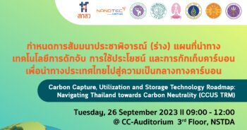 นาโนเทค สวทช. และเครือข่ายพันธมิตรจัดสัมมนาประชาพิจารณ์ (ร่าง) แผนที่นำทางเทคโนโลยีการดักจับการใช้ประโยชน์ และการกักเก็บคาร์บอน เพื่อนำทางประเทศไทยไปสู่ความเป็นกลางทางคาร์บอน