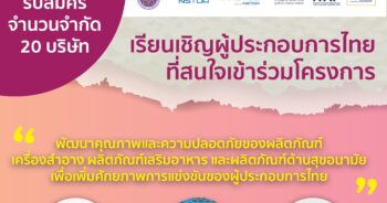 รับสมัครผู้ประกอบการเข้าร่วมโครงการ “พัฒนาคุณภาพและความปลอดภัยของผลิตภัณฑ์เครื่องสำอาง ผลิตภัณฑ์เสริมอาหาร และผลิตภัณฑ์ด้านสุขอนามัยเพื่อเพิ่มศักยภาพการแข่งขันของผู้ประกอบการไทย”