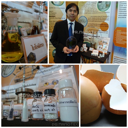 ซึ่งเป็นการสังเคราะห์ตัวเร่งปฏิกริยาชนิดใหม่ในการผลิตไบโอดีเซลที่เป็นของแข็ง ทดแทนตัวแร่งปฏิกิริยาเคมีซึ่งเป็นของเหลวในกระบวนการระดับอุตสาหกรรม เนื่องจากตัวเร่งปฏิกิริยาที่ใช้กันอยู่ ณ ปัจจุบัน ทำให้เกิดน้ำเสียที่ยากต่อการกำจัด