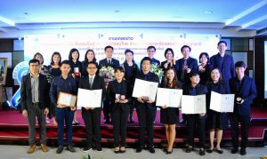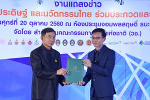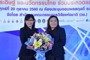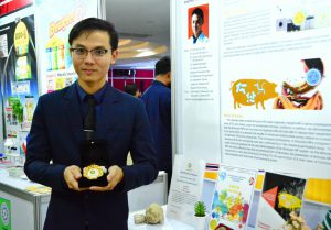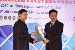 20 ตุลาคม 60 ดร.ธีรพงศ์ ยะทา นักวิจัยห้องปฏิบัติการระบบนำส่ง หน่วยวิจัยนาโนเทคโนโลยีเพื่อชีวิตและสุขภาพ เข้ารับประกาศเกียรติคุณจากพลอากาศเอกประจิน จั่นตอง รองนายกรัฐมนตรี ในงานแถลงข่าว “การนำผลงานวิจัยสิ่งประดิษฐและนวัตกรรมไทยร่วมประกวดและจัดแสดงในเวทีนานาชาติ” ณ อาคาร วช.1 สำนักงานคณะกรรมการวิจัยแห่งชาติ