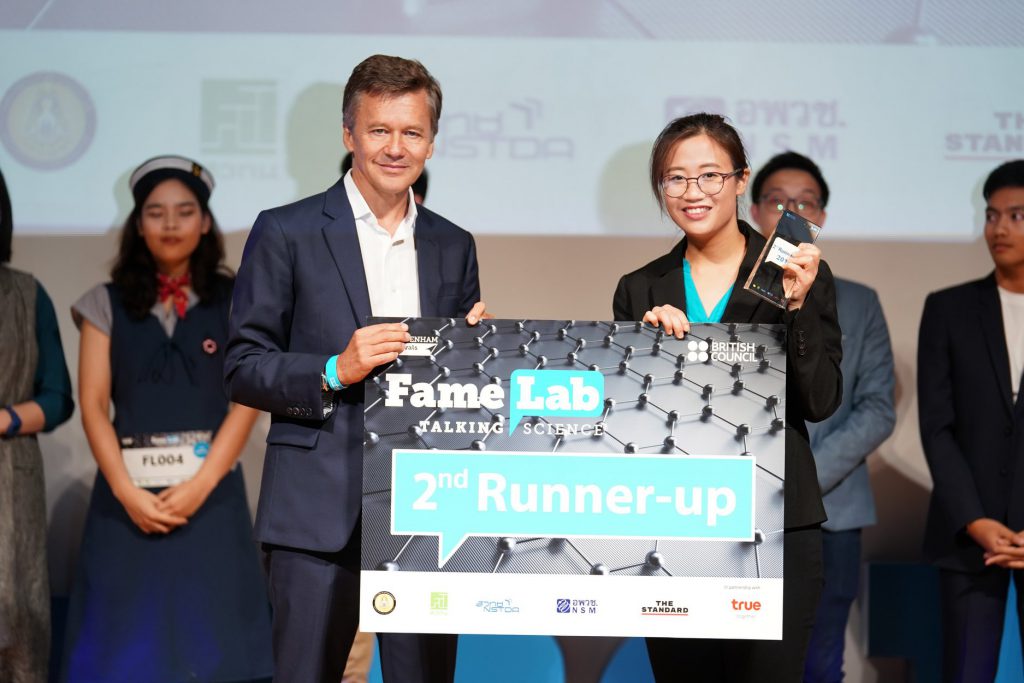 โครงการ FameLab 2018 ดำเนินการโดย บริติช เคานซิล ร่วมกับ สวทช. สวทน. อพวช. ทรู คอร์ปอเรชั่น และเดอะ สแตนดาร์ด เปิดโอกาสให้นักวิทยาศาสตร์หรือผู้เชี่ยวชาญในสาขาวิทยาศาสตร์ เทคโนโลยี วิศวกรรมศาสตร์ และคณิตศาสตร์ ได้พูดถึงงานวิจัยหรืองานวิทยาศาสตร์ที่ตนเองสนใจ ภายในเวลา 3 นาที เพื่อให้วิทยาศาสตร์เป็นเรื่องใกล้ตัว สนุกและสร้างแรงบันดาลใจให้คนรุ่นใหม่ ครอบคลุมหลักเกณฑ์ 3 ข้อ คือ เนื้อหาชัดเจน (content) ถูกต้อง (clarity) และน่าสนใจ (charisma) ซึ่งจากการแข่งขันรอบแรก มีผู้สมัครจากทั่วประเทศจำนวน 82 คน ได้ผ่านการคัดเลือกอย่างเข้มข้นโดยคณะกรรมการจนเหลือ 10 คนสุดท้าย และได้เข้าร่วมการอบรมพิเศษ หรือมาสเตอร์คลาส (Masterclass) โดยผู้เชี่ยวชาญด้านการสื่อสารทางวิทยาศาสตร์จากสหราชอาณาจักร