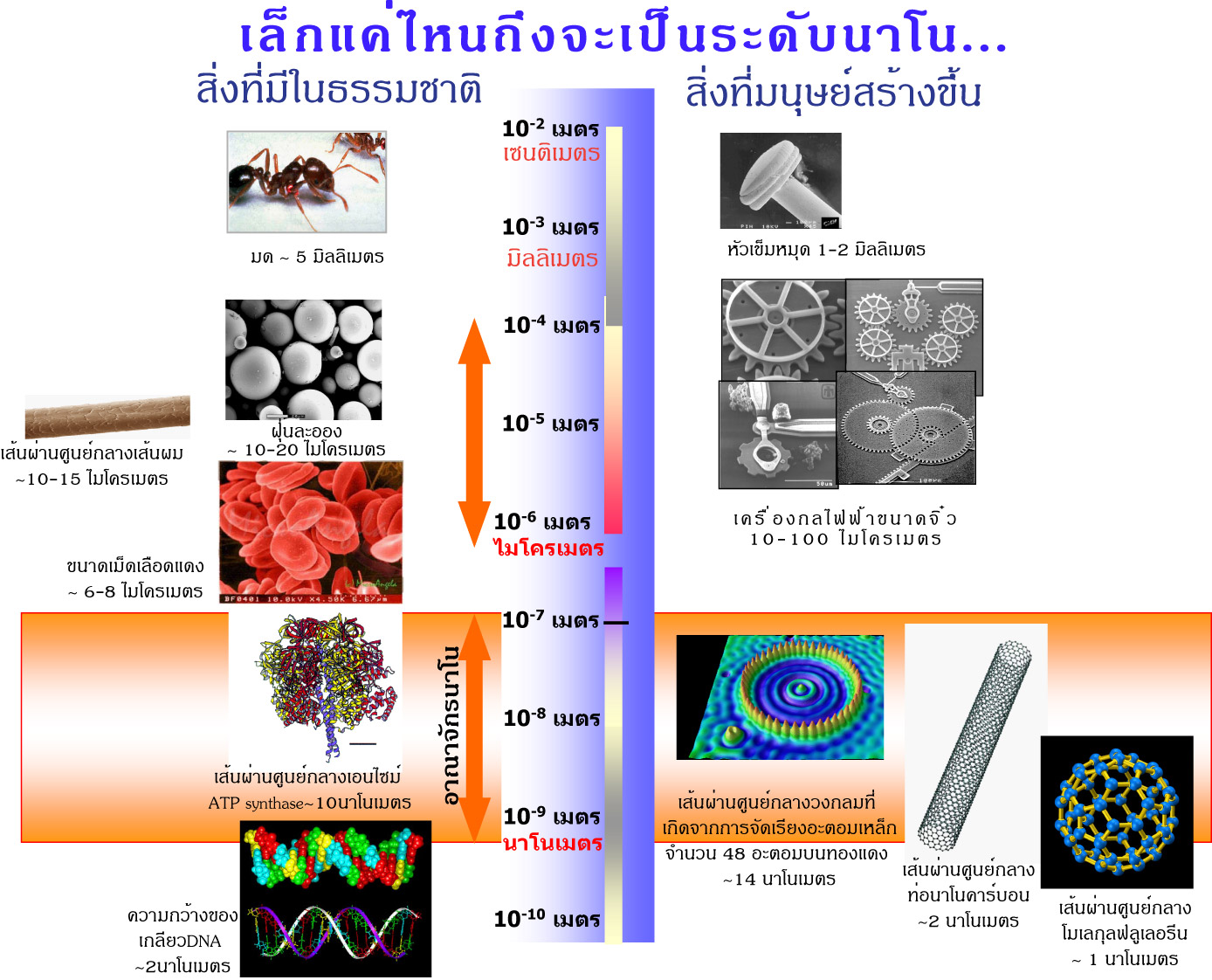 หนึ่งนาโนเมตร (1 nm) = เศษหนึ่งส่วนพันล้านส่วนของหนึ่งเมตร