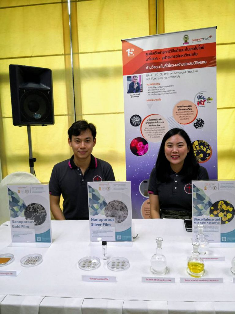 นอกจากการแถลงข่าวจัดงานประชุมวิชาการฯและกิจกรรมพิเศษแล้ว ภายในงานแถลงข่าวฯยังมีการจัดแสดงผลงานวิจัยที่ถูกพัฒนาขึ้นเพื่อตอบโจทย์ในกลุ่มอุตสาหกรรมต่าง ๆ ได้แก่ ทีมวิจัยจากนาโนเทค สวทช. นำเสนอการพัฒนาเส้นใยสำหรับสิ่งทอจากพอลิเมอร์ที่ย่อยสลายได้ซึ่งเป็นงานวิจัยระหว่างนาโนเทคและบริษัท พีทีที เอ็มซีซี ไบโอเคม จำกัด เพื่อพัฒนาเทคโนโลยีขึ้นรูปสิ่งทอจากเม็ด Bio PBS ซึ่งเป็นพลาสติกที่ย่อยสลายได้ในธรรมชาติและเป็นมิตรต่อสิ่งแวดล้อม และเทคโนโลยีไมโครนีดเดิ้ลเซ็นเซอร์เพื่อการตรวจวินิจฉัยทางการแพทย์ ศูนย์เครือข่ายการวิจัยด้านนาโนเทคโนโลยี-จุฬาลงกรณ์มหาวิทยาลัย นำเสนอแถบตรวจวัดชนิดของไออนโลหะด้วยเทคนิคฟลูออเรสเซนต์ นวัตกรรมเม็ดบีดกักเก็บจุลินทรีย์และสมุนไพรเพื่อเพิ่มประสิทธิภาพการปลูกพืชและผลผลิตทางการเกษตร แคปซูลบรรจุน้ำมันหอมระเหยที่หุ้มด้วยเปลือกจากสารสกัดสาหร่ายสีน้ำตาล เทคโนโลยีการกรองด้วยเมมเบรนสำหรับการผลิตน้ำประปาและการนำน้ำกลับมาใช้ใหม่ และเจลไบโอโซลลูโลสจากแบคทีเรียที่สามารถพัฒนาให้กลายเป็นผลิตภัณฑ์มูลค่าสูง