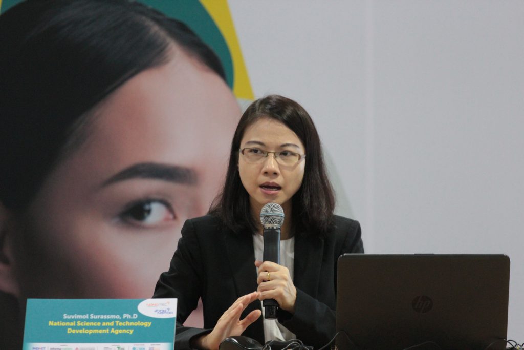 ดร. สุวิมลยกตัวย่างนวัตกรรมที่ทีมวิจัยนาโนเทคพัฒนาขึ้น ไม่ว่าจะเป็นสารสกัดที่สามารถไล่ยุงด้วยนาโนเทคโนโลยี ที่สามารถพัฒนาเป็นผลิตภัณฑ์ที่หลากหลาย ทั้งสเปรย์ โลชั่น ครีมกันแดด แผ่นแปะไล่ยุง หรือการกักเก็บอนุภาคสมุนไพรไทยอย่างกานพลู บัวบก และมังคุด เพื่อพัฒนาเป็นผลิตภัณฑ์รักษาสิวที่สามารถเข้าสู่ชั้นผิวหนังได้ดีขึ้น
