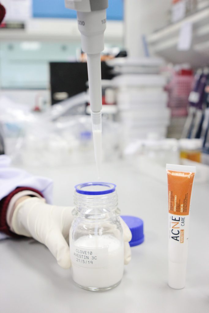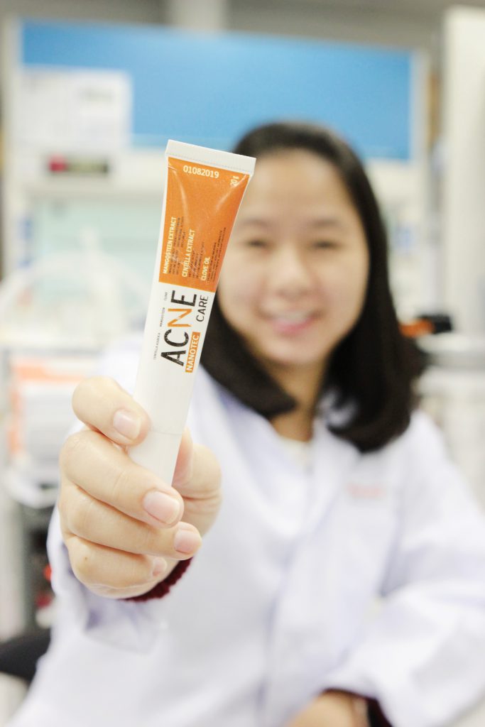 นักวิจัยนาโนเทคพัฒนาอนุภาคนาโน เป็นตัวช่วยกักเก็บสารสกัดสมุนไพรไทยอย่างบัวบก มังคุด กานพลู ที่ช่วยลดอักเสบ รอยดำ พร้อมนำส่งสู่ชั้นผิวหนัง ต่อยอดพัฒนาตำรับเวชสำอางสู้สิว