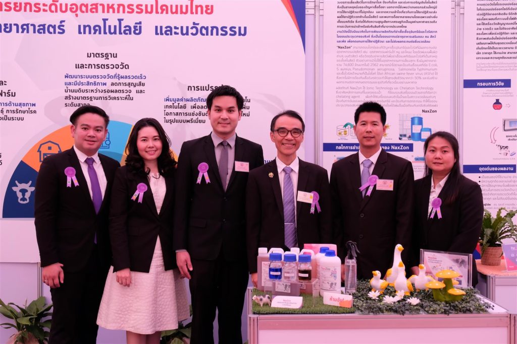 “น้ำยาฆ่าเชื้อ Naxzon” โดย ดร.วรายุทธ สะโจมแสง ทีมวิจัยนาโนเทคโนโลยีเพื่อสิ่งเเวดล้อม นาโนเทค ที่พัฒนาผลิตภัณฑ์ฆ่าเชื้อเชื้อจุลินทรีย์และไวรัสจากธรรมชาติด้วยไอออนประจุบวกของซิงค์เพื่อทดแทนยาปฏิชีวนะ เพื่อลดการใช้ยาปฏิชีวนะซึ่งเป็นสาเหตุหนึ่งของปัญหาเชื้อดื้อยา และยังตอบโจทย์หลักของรัฐบาลในเชิงเศรษฐกิจแบบ BCG ที่สามารถแข่งขันได้ในระดับโลก โดยไอออนประจุบวกของซิงค์ฆ่าเชื้อแบคทีเรียทั้งแกรมบวกและแกรมลบ รวมถึงฆ่าเชื้อไวรัสโดยเฉพาะเชื้อไวรัสอหิวาต์สุกรอัฟริกัน (African swine fever virus, ASFV) ได้เป็นผลิตภัณฑ์แรกที่พัฒนาจากงานวิจัยไทย ปัจจุบันเป็นต้นแบบเชิงพาณิชย์ โดยได้ถ่ายทอดเทคโนโลยีให้กับบริษัทยูนิซิลกรุ๊ปจำกัด เพื่อผลิตและจำหน่ายซิงค์ไอออนผลิตภัณฑ์ฆ่าเชื้อจุลินทรีย์และไวรัสจากธรรมชาติ ในชื่อของ “Naxzon” และจดอนุสิทธิบัตร เลขที่คำขอ 1903001426 องค์ประกอบสำหรับฆ่าเชื้อจุลินทรีย์ 2562
