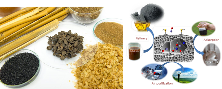 ประเทศไทยได้ขึ้นชื่อว่าเป็นประเทศแห่งเกษตรกรรมและมีวัสดุเหลือทิ้งทางการเกษตรที่หลากหลาย ดังนั้น จึงมีแนวคิดในการนำวัสดุเหลือทิ้งทางการเกษตรมาใช้เป็นวัตถุดิบตั้งต้นในการผลิตถ่านคาร์บอนกัมมันต์ ซึ่งนับเป็นหนึ่งในกุญแจดอกสำคัญของการเพิ่มมูลค่าทางเศรษฐกิจให้กับวัสดุเหลือทิ้งทางการเกษตรของประเทศได้อย่างมีนัยสำคัญ