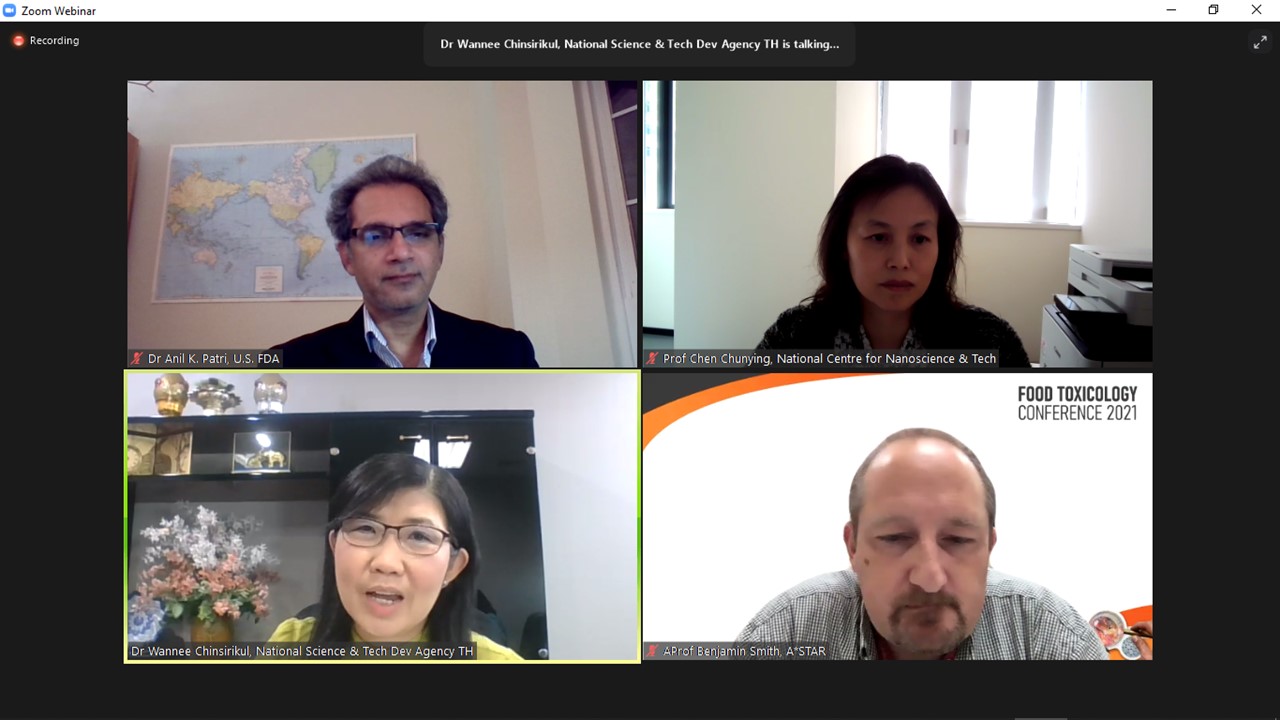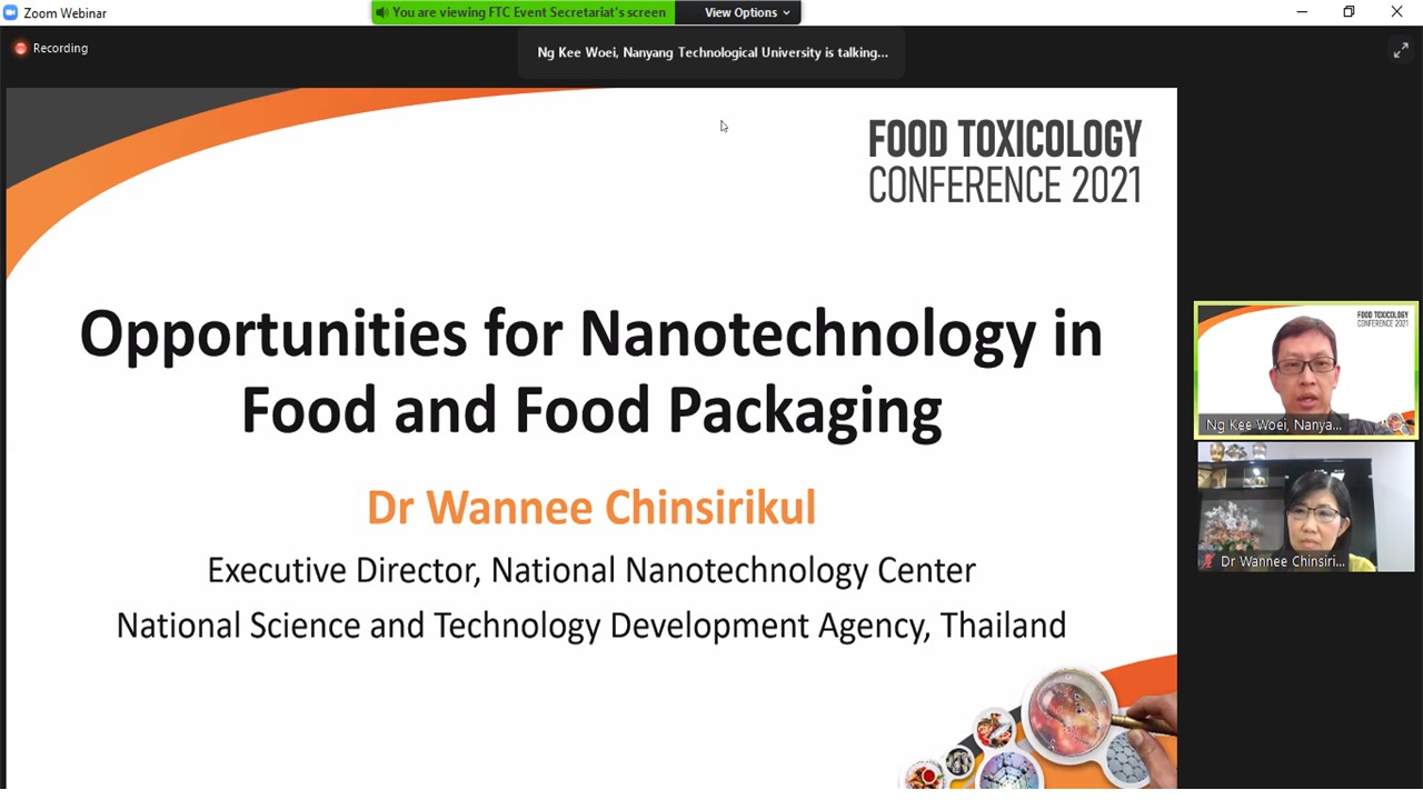 (29 มกราคม 2564) ดร.วรรณี ฉินศิริกุล ผศน. ได้รับเชิญจาก the International Life Sciences Institute (ILSI) ประเทศสิงคโปร์เพื่อร่วมบรรยายในหัวข้อ “Opportunities for Nanotechnology in Food and Food Packaging” ของ session 4: Challenges in Regulating Nanomaterials: Keeping pace with the science และร่วมอภิปราย แลกเปลี่ยนความคิดเห็นในช่วง Panel Discussion: Challenges and opportunities in use of nanomaterials in food สำหรับการประชุมออนไลน์ Food Toxicology Conference 2021: Opportunities and Challenges for Safe Use of Nanomaterials in Food ซึ่งจัดขึ้นระหว่างวันที่ 26-29 มกราคม 2564