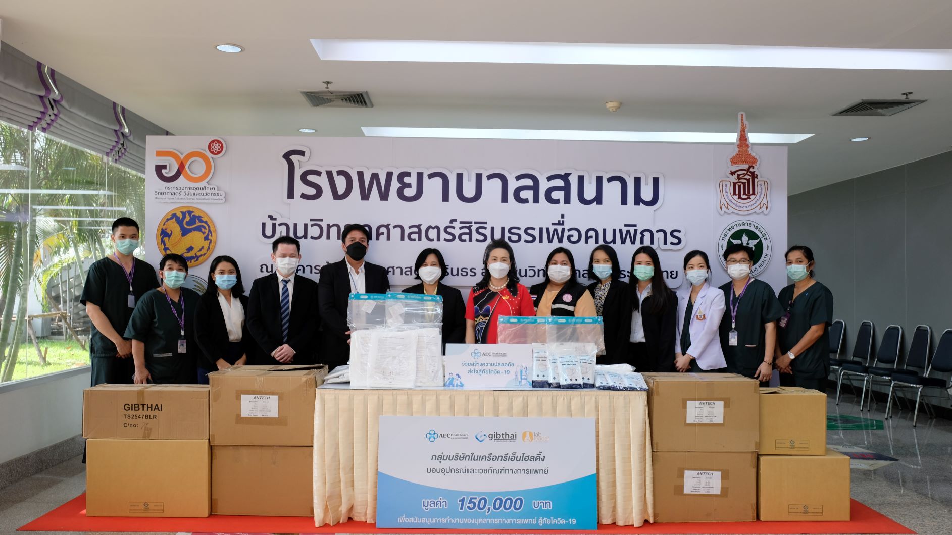 โดยอุปกรณ์และเวชภัณฑ์ทางการแพทย์ที่ได้รับการสนับสนุนจาก บริษัท เออีซี เฮลธ์แคร์ จำกัด ได้แก่ ชุดป้องกันเชื้อโรค Disposable Protective Clothing Gown (PPE) หน้ากากอนามัยทางการแพทย์ และอุปกรณ์ป้องกันส่วนบุคคล รวมมูลค่ากว่า 150,000 บาท