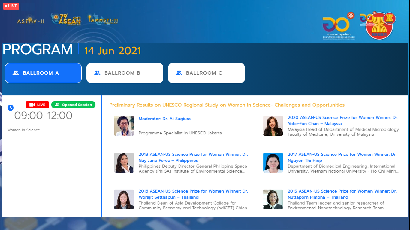 งานสัปดาห์วิทยาศาสตร์อาเซียนครั้งที่ 11 (ASTIW-11) การประชุมคณะกรรมการอาเซียนว่าด้วยวิทยาศาสตร์ เทคโนโลยี และนวัตกรรม ครั้งที่ 79 (COSTI-79) การประชุมรัฐมนตรีอาเซียนว่าด้วยวิทยาศาสตร์ เทคโนโลยีและนวัตกรรม อย่างไม่เป็นทางการ ครั้งที่ 11 (IAMMSTI-11) และการประชุมอื่นๆ ที่เกี่ยวข้อง จัดขึ้นระหว่างวันที่ 14-17 มิถุนายน 2564 ณ กรุงเทพฯ ประเทศไทย