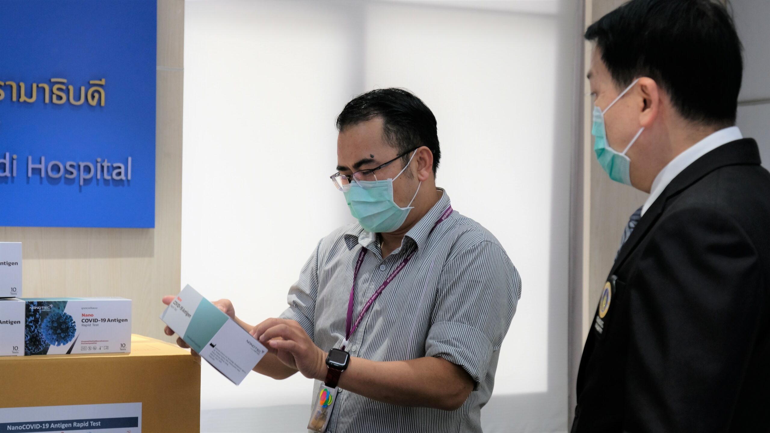ชุดตรวจ NANO COVID-19 Antigen Rapid Test ซึ่งเป็นชุดทดสอบอย่างง่ายและรวดเร็วสำหรับบุคลากรทางการแพทย์ (Professional Use) ซึ่งผ่านการประเมินประสิทธิภาพจากทางคณะกรรมการอาหารและยา (อย.) เรียบร้อยแล้ว โดยชุดตรวจ Nano COVID-19 Antigen Rapid Test นี้สามารถตรวจหาแอนติเจนหรือตัวเชื้อไวรัสโคโรนาสายพันธุ์ใหม่ 2019 (COVID-19) ได้ในเวลาเพียง 5-15 นาที และมีความไวถึง 98% และความจำเพาะสูงถึง 100% ซึ่งสามารถใช้ตรวจคัดกรองผู้ป่วยโควิด-19 ในเบื้องต้นได้ ซึ่งจะช่วยลดปริมาณผู้ป่วยที่ต้องตรวจด้วยวิธีการ RT-PCR (Real Time Polymerase Chain Reaction) ที่ต้องใช้เวลาประมาณ 24 – 48 ชั่วโมง โดยผู้ที่ให้ผลบวกด้วยวิธี Antigen Rapid Test นี้ ต้องได้รับการตรวจยืนยันด้วยวิธี RT-PCR เพื่อยืนยันอีกครั้ง
