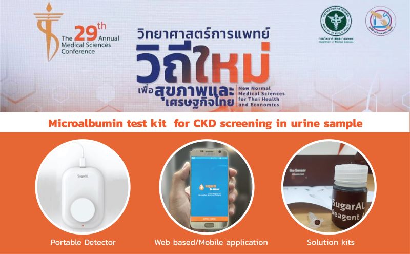 ดร. เดือนเพ็ญ จาปรุง ผู้อำนวยการกลุ่มวิจัยวัสดุตอบสนองและเซ็นเซอร์ระดับนาโน ศูนย์นาโนเทคโนโลยีแห่งชาติ เข้ารับพระราชทานรางวัลชนะเลิศ DMSc Award ประจำปี 2564 ประเภทงานวิจัยและพัฒนาทางวิทยาศาสตร์การแพทย์ เรื่อง “แอปตาเซ็นเซอร์สำหรับวิเคราะห์อัลบูมินในปัสสาวะเพื่อประกอบการคัดกรองโรคไตเรื้อรัง”จากการประชุมวิชาการวิทยาศาสตร์การแพทย์ ครั้งที่ 29 ประจำปีงบประมาณ 2564 ภายใต้หัวข้อ “วิทยาศาสตร์การแพทย์วิถีใหม่ เพื่อสุขภาพและเศรษฐกิจไทย : New Normal Medical Sciences for Thai Health and Economics” โดยมี นายอนุทิน ชาญวีรกูล รองนายกรัฐมนตรีและรัฐมนตรีว่าการกระทรวงสาธารณสุข กล่าวรายงานวัตถุประสงค์ของการจัดงานประชุมวิชาการวิทยาศาสตร์การแพทย์ครั้งที่ 29 แบบออนไลน์ ซึ่งกรมวิทยาศาสตร์การแพทย์และมูลนิธิกรมวิทยาศาสตร์การแพทย์ ร่วมกันจัดขึ้น เพื่อเป็นเวทีให้นักวิชาการด้านวิทยาศาสตร์การแพทย์และสาธารณสุขได้มีโอกาสแลกเปลี่ยนความคิดเห็น ความรู้และประสบการณ์ ตลอดจนรับทราบความก้าวหน้าทางวิทยาการนวัตกรรมและเทคโนโลยีด้านวิทยาศาสตร์การแพทย์ เพื่อที่จะได้พัฒนาและร่วมกันสร้างสรรค์งานวิชาการด้านวิทยาศาสตร์การแพทย์ให้มีความก้าวหน้า และเป็นประโยชน์ต่อประเทศชาติและประชาชน