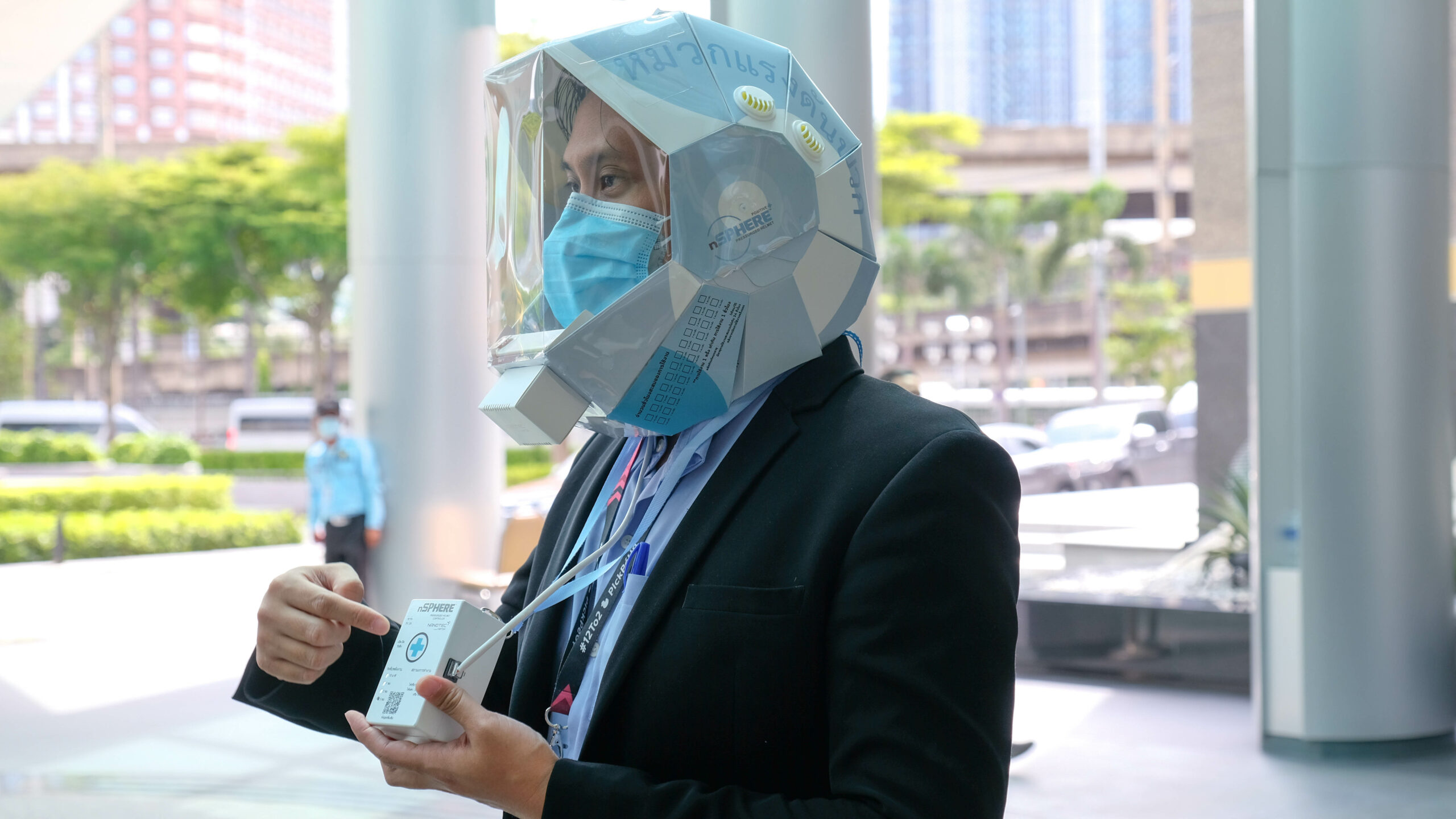 nSPHERE Pressurized Helmet หมวกควบคุมแรงดันบวกและลบ เป็นนวัตกรรมที่พัฒนาขึ้นโดยอาศัยแนวคิดประกอบง่าย ผลิตเร็ว ราคาไม่แพง จัดเป็นอุปกรณ์ส่วนบุคคลที่สามารถใช้ได้สะดวก มีน้ำหนักเบาและสามารถนำอุปกรณ์ควบคุมกลับมาใช้ซ้ำได้ สามารถนำไปใช้เพื่อลดการแพร่กระจายเชื้อของผู้ป่วยระหว่างการเดินทางมารักษายังโรงพยาบาล ตลอดจนลดความเสี่ยงติดเชื้อให้กับกลุ่มบุคลากรทางการแพทย์อีกด้วย