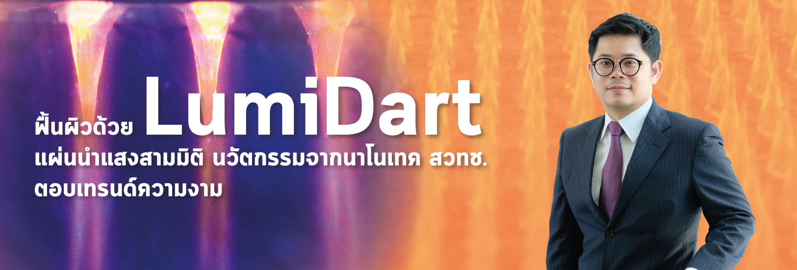 นักวิจัยนาโนเทค สวทช. ผสานเทคโนโลยีเข็มขนาดไมโคร (MicroNeedles) กับการบำบัดผิวด้วยการฉายแสง (Phototherapy) พัฒนา “ลูมิดาร์ท (LumiDart)” แผ่นเข็มนำแสงสามมิติที่มีขนาดเล็กมากในระดับไมโครเมตร ตัวช่วยนำพาแสงไปยังชั้นใต้ผิวหนังโดยตรง ด้วยจุดเด่นคือ ใช้ความเข้มแสงน้อย เพิ่มประสิทธิภาพ และไม่เจ็บ แก้ปัญหาผิว อาทิ สิว จุดด่างดำ ผิวหน้าหย่อนคล้อย หรือรอยแผลเป็นจากสิว พร้อมต่อยอดสู่เทคโนโลยีการควบคุมและออกแบบเข็มเฉพาะทาง ที่สามารถใช้งานด้านการแพทย์