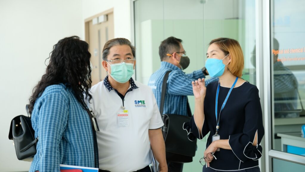 เมื่อวันที่ 22 พฤศจิกายน 2564 ดร.วรรณี ฉินศิริกุล ผู้อำนวยการศูนย์นาโนเทคโนโลยีแห่งชาติ พร้อมด้วย ดร.ภาวดี อังค์วัฒนะ รองผู้อำนวยการศูนย์นาโนเทคโนโลยีแห่งชาติ และผู้บริหาร สวทช. ร่วมต้อนรับ คุณแสงชัย ธีรกุลวาณิช ประธานสมาพันธ์เอสเอ็มอีไทยและคณะ ในโอกาสเดินทางเยี่ยมชมศูนย์วิจัยแห่งชาติของ สวทช. โดยมีความสนใจด้านงานวิจัยนวัตกรรมอาหารและเครื่องสำอาง ซึ่งจัดเป็นกลุ่มอุตสาหกรรมที่กำลังได้รับความนิยมในหมู่ผู้บริโภคและนำไปสู่การก่อตั้งกลุ่มธุรกิจประเภทเอสเอ็มอีอย่างกว้างขวาง