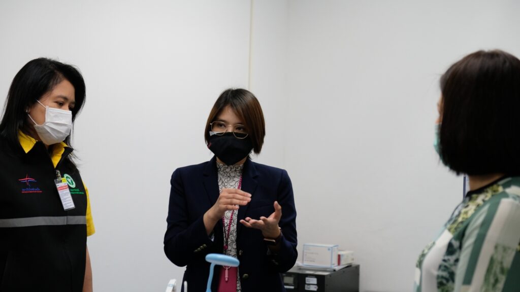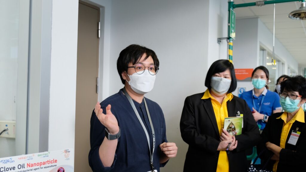 เมื่อวันที่ 13 ธันวาคม 2564 ผศ.ดร.ธนากร โอสถจันทร์ รองผู้อำนวยการศูนย์นาโนเทคโนโลยีแห่งชาติ พร้อมด้วยทีมวิจัยนาโนเทค ให้การต้อนรับคณะผู้บริหารจาก สถาบันโรคผิวหนัง  กรมการแพทย์ กระทรวงสาธารณสุข นำโดย พญ.มิ่งขวัญ วิชัยดิษฐ ผู้อำนวยการฯ ในการประชุมหารือความร่วมมือระหว่าง สวทช. – นาโนเทค – สถาบันโรคผิวหนัง ในงานวิจัยและพัฒนาด้าน Cosmeceutical และเครื่องมือแพทย์ เพื่อขยายโอกาสความร่วมมือระหว่างองค์กร พร้อมทั้งสนับสนุนให้เกิดความคล่องตัวในส่วนของงานวิจัยที่กำลังมีความร่วมมือในปัจจุบัน โดยได้เข้าเยี่ยมชมทีมวิจัยความปลอดภัยระดับนาโนด้านสุขภาพและสิ่งแวดล้อม และกลุ่มวิจัยการห่อหุ้มระดับนาโน ซึ่งมีทีมวิจัยให้การต้อนรับ