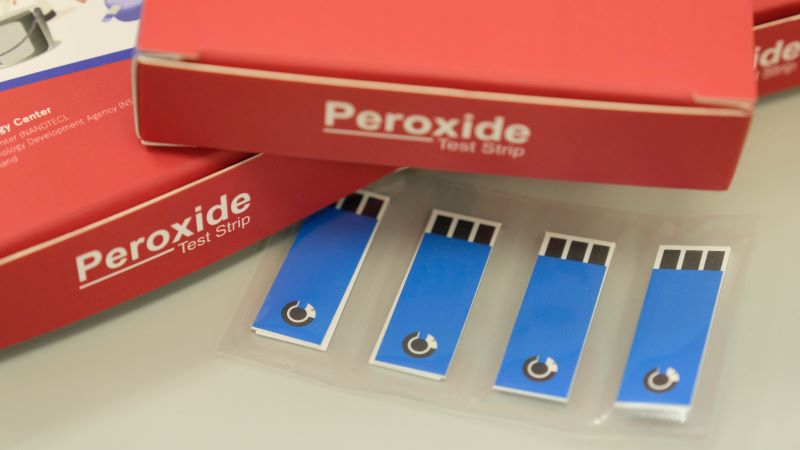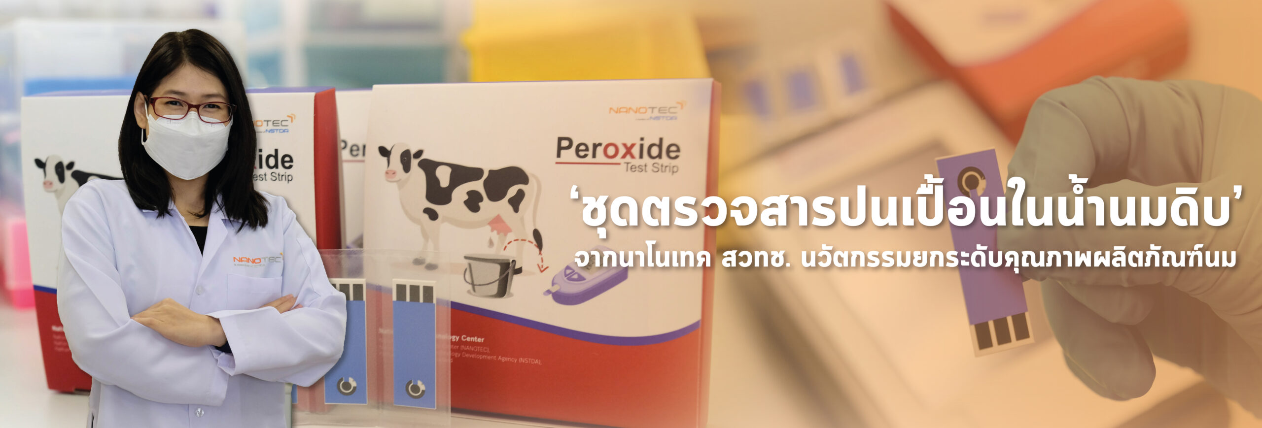 “ชุดตรวจสารปนเปื้อนในน้ำนมดิบ (Peroxide Test Stripe)” จึงเกิดขึ้น โดย ดร.กุลวดี การอรชัย จากทีมวิจัยการวินิจฉัยระดับนาโน กลุ่มวิจัยวัสดุตอบสนองและเซ็นเซอร์ระดับนาโน นาโนเทค สวทช. ในฐานะหัวหน้าโครงการ พร้อมทีมวิจัยที่ประกอบด้วย น.ส. อรุณศรี งามอรุณโชติ และน.ส. ประภาภรณ์ แสงแก้วพัฒนาเซนเซอร์ทางไฟฟ้าเคมีสำหรับการตรวจวัดไฮโดรเจนเปอร์ออกไซด์เชิงปริมาณในน้ำนม ซึ่งการตรวจวัดไฮโดรเจนเปอร์ออกไซด์ เป็นหนึ่งในชุดตรวจคุณภาพน้ำนมดิบ โดยสามารถบ่งบอกปริมาณและความเข้มข้นของไฮโดรเจนเปอร์ออกไซด์ที่เจือปนในน้ำนมได้ โดยอาศัยเทคโนโลยีในการออกแบบและสังเคราะห์อนุภาคนาโนโลหะผสมแล้วนำไปเคลือบบนขั้วไฟฟ้าคาร์บอนพิมพ์สกรีน