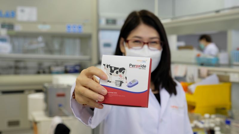 นักวิจัยนาโนเทค สวทช. ต่อยอดองค์ความรู้ด้านการพัฒนาเซนเซอร์ทางไฟฟ้าเคมีสู่ชุดตรวจสารปนเปื้อนในน้ำนมดิบที่มีความไวสูง สามารถตรวจไฮโดรเจนเปอร์ออกไซด์ในน้ำนมดิบได้แม้มีความเข้มข้นน้อย ราคาถูก ใช้งานง่าย ตรวจวัดและวิเคราะห์ผลเร็ว มีความจำเพาะเจาะจงและความถูกต้องสูง ลดการสูญเสียน้ำนมดิบที่ไม่มีคุณภาพ และลดผลกระทบต่อกระบวนการแปรรูปน้ำนมดิบ ส่งมอบ อ.ส.ค. สำหรับใช้ในศูนย์รับน้ำนม อ.ส.ค ทั่วประเทศ หวังเป็นตัวช่วยยกระดับคุณภาพผลิตภัณฑ์นม และอุตสาหกรรมโคนมของไทย