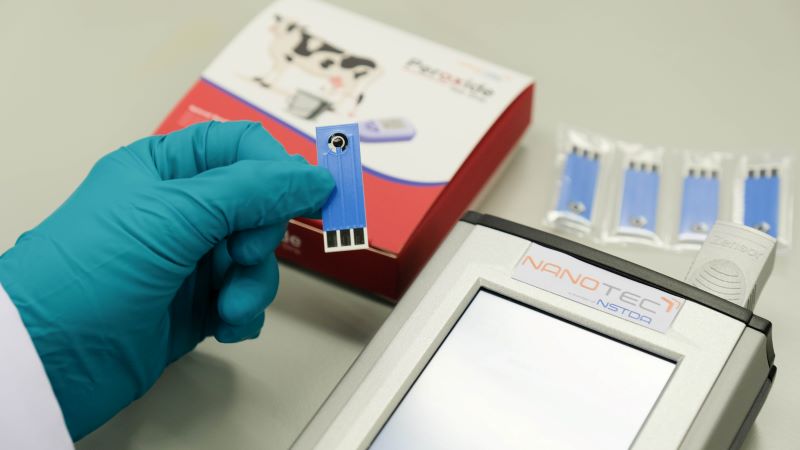 จุดเด่นของงานวิจัยชิ้นนี้ นักวิจัยนาโนเทคชี้ว่า เป็นเซนเซอร์ที่สามารถตรวจวัดการปนเปื้อนของไฮโดรเจนเปอร์ออกไซด์เชิงปริมาณในน้ำนมดิบได้ โดยสามารถแสดงค่าเป็นตัวเลขความเข้มข้นของไฮโดรเจนเปอร์ออกไซด์เมื่อใช้ร่วมกับเครื่องอ่านแบบพกพา สามารถใช้งานได้ง่าย สะดวก รวดเร็ว รู้ผลภายในเวลา 2 นาที มีความไวในการตรวจวัดสูงกว่าชุดตรวจที่มีในท้องตลาด นอกจากนี้ ชุดตรวจที่พัฒนาขึ้นมีความเสถียรและเก็บรักษาได้ง่าย เนื่องจากไม่มีการใช้สารชีวโมเลกุล จึงทำให้สามารถใช้ได้ทุกสถานที่ในการตรวจคุณภาพน้ำนมดิบจำนวนมากได้
