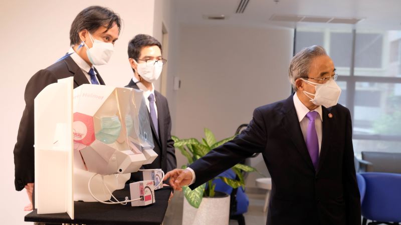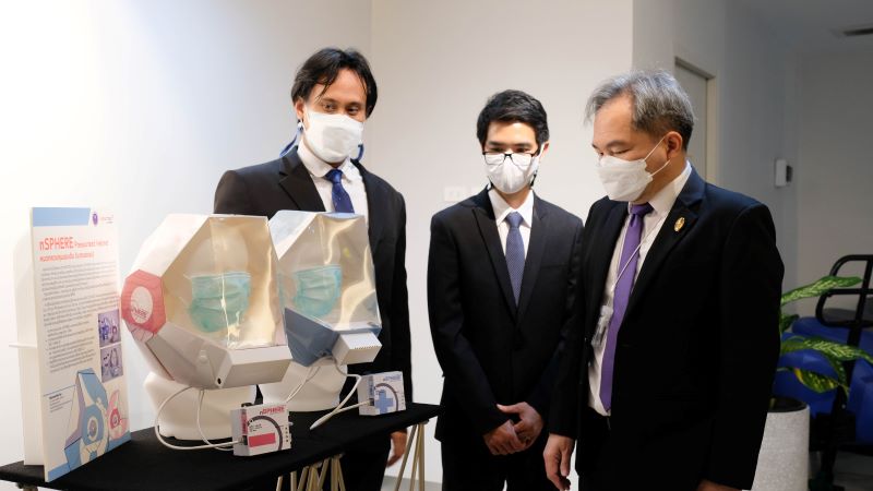 ดร.วรรณี ฉินศิริกุล ผู้อำนวยการศูนย์นาโนเทคโนโลยีแห่งชาติ (นาโนเทค) พร้อมด้วย ดร.กิตติพวษ์ ตันติสันติสม และ ดร.ยศวัต รายณะสุข จากทีมวิจัยเข็มระดับนาโน กลุ่มวิจัยวัสดุตอบสนองและเซ็นเซอร์ระดับนาโน เป็นตัวแทนนำนวัตกรรม ‘หมวกควบคุมแรงดันบวกและลบ’ หรือ nSPHERE เข้าร่วมการแถลงความคืบหน้าผลงานวิจัยและพัฒนานวัตกรรม ตามโมเดลเศรษฐกิจ BCG สาขาเครื่องมือแพทย์ ของสวทช. พร้อมด้วยคุณสราญวิชญ์ อ่ำสุข กรรมการผู้จัดการ บริษัทเวลล์เนส อินโนเวชั่น บียอนด์ จำกัด เอกชนผู้รับถ่ายทอดเทคโนโลยีอุปกรณ์ส่วนบุคคลที่สามารถใช้เพื่อลดความเสี่ยงในการแพร่กระจายเชื้อได้อย่างมีประสิทธิภาพช่วยป้องกันผู้ป่วยติดเชื้อโควิด -19 ในวงจำกัดนี้ โดยได้นำเสนอผลงานร่วมกับนวัตกรรมอื่น อาทิ A-MED Telehealth แพลตฟอร์มบริการแพทย์ทางไกล หรือ ระบบสำหรับบริหารจัดการผู้ป่วยในการกักตัวที่บ้าน (Home isolation) และที่ชุมชน (Community isolation) และนวัตกรรม สเปซ วอล์กเกอร์ อุปกรณ์ช่วยฝึกเดินพร้อมระบบพยุงน้ำหนักฯ