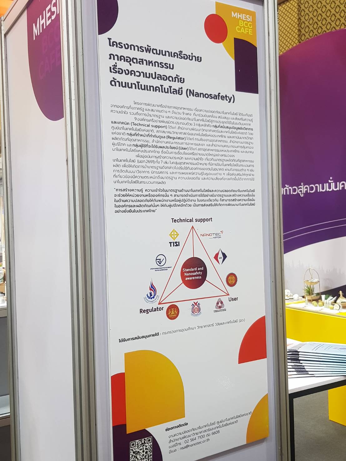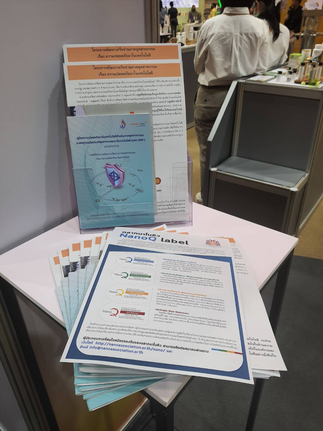 ทั้งนี้ ภายในงานได้มีการร่วมพูดคุยถึงความสำคัญของความปลอดภัยนาโนเทคโนโลยี ให้กับผู้ร่วมงานที่สนใจ และประชาสัมพันธ์โครงการพัฒนาเครือข่ายภาคอุตสาหกรรม เรื่อง ความปลอดภัยนาโนเทคโนโลยี ที่ได้ดำเนินงานร่วมกับพันธมิตร 9 หน่วยงาน ทั้งภาครัฐและภาคอุตสาหกรรม เพื่อร่วมกันบูรณาการการทำงานและขับเคลื่อนการพัฒนานาโนเทคโนโลยีให้เกิดความปลอดภัยและยั่งยืน รวมถึงร่วมเผยแพร่สื่อเอกสารที่เกี่ยวข้อง เช่น คู่มือความปลอดภัยนาโนเทคโนโลยีสำหรับภาคอุตสาหกรรม รายชื่อมาตรฐานฯ ที่เกี่ยวข้องกับนาโนเทคโนโลยี และฉลากนาโน (NanoQ) ของประเทศไทย