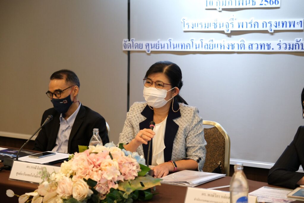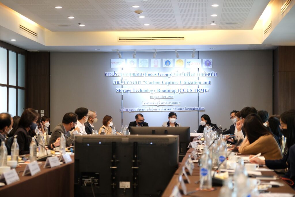 เมื่อวันที่ 10 กุมภาพันธ์ 2566 สำนักงานพัฒนาวิทยาศาสตร์และเทคโนโลยีแห่งชาติ (สวทช.) โดยศูนย์นาโนเทคโนโลยีแห่งชาติ (นาโนเทค) นำโดย ดร.วรรณี ฉินศิริกุล ผู้อำนวยการนาโนเทค พร้อมด้วยผู้บริหารและนักวิจัย จัดการประชุมรับฟังความคิดเห็นเฉพาะกลุ่ม (Focus Group) เพื่อรับฟังความคิดเห็นภายใต้โครงการ “แผนที่นำทางเทคโนโลยีดักจับ การใช้ประโยชน์ และการกักเก็บคาร์บอน เพื่อนำทางประเทศไทยไปสู่ความเป็นกลางทางคาร์บอน (CCUS TRM)” ซึ่งได้รับเกียรติจาก ดร.พงษ์วิภา หล่อสมบูรณ์ ในนามผู้แทนหน่วยงานสนับสนุนงบประมาณด้านการวิจัย สำนักงานคณะกรรมการส่งเสริมวิทยาศาสตร์ วิจัยและนวัตกรรม (สกสว.) ให้เกียรติกล่าวเปิดงาน ณ โรงแรมเซ็นจูรี่ พาร์ค กรุงเทพฯ ทั้งนี้ โครงการดังกล่าวเป็นความร่วมมือระหว่างนาโนเทคและเครือข่ายพันธมิตร ได้แก่ มหาวิทยาลัยเชียงใหม่, มหาวิทยาลัยเกษตรศาสตร์, จุฬาลงกรณ์มหาวิทยาลัย, มหาวิทยาลัยมหิดล และมหาวิทยาลัยธรรมศาสตร์ ที่ได้ร่วมกันผนึกความเชี่ยวชาญทั้งด้านเทคโนโลยี และความเชี่ยวชาญด้านการจัดทำแผนที่นำทางเทคโนโลยี เพื่อบูรณาการความร่วมมือในการจัดทำ CCUS TRMภายในงานได้รับเกียรติจากเครือข่ายพันธมิตร และผู้มีส่วนเกี่ยวข้อง จากหน่วยงานต่าง ๆ ครอบคลุมหน่วยวิจัย มหาวิทยาลัย หน่วยงานกำกับและขับเคลื่อนนโยบาย หน่วยงานภาครัฐ และภาคเอกชนผู้ใช้เทคโนโลยีการลดก๊าซเรือนกระจก และแก๊ส CO2 อาทิ สถาบันเทคโนโลยีนานาชาติสิรินธร มหาวิทยาลัยธรรมศาสตร์, สถาบันวิทยสิริเมธี, กรมเชื้อเพลิงธรรมชาติ (ชธ.) สำนักงานนโยบายและแผนพลังงาน (สนพ.), องค์การบริหารจัดการก๊าซเรือนกระจก (องค์การมหาชน), สำนักงานสภานโยบายการอุดมศึกษา วิทยาศาสตร์ วิจัยและนวัตกรรมแห่งชาติ (สอวช.), บริษัท ปตท.สำรวจและผลิตปิโตรเลียม จำกัด (มหาชน), บริษัท ปูนซิเมนต์ไทย จำกัด (มหาชน) บริษัท เอสโซ่ (ประเทศไทย) จำกัด (มหาชน) และ การไฟฟ้าฝ่ายผลิตแห่งประเทศไทย (กฟผ.) เข้าร่วมการประชุม
