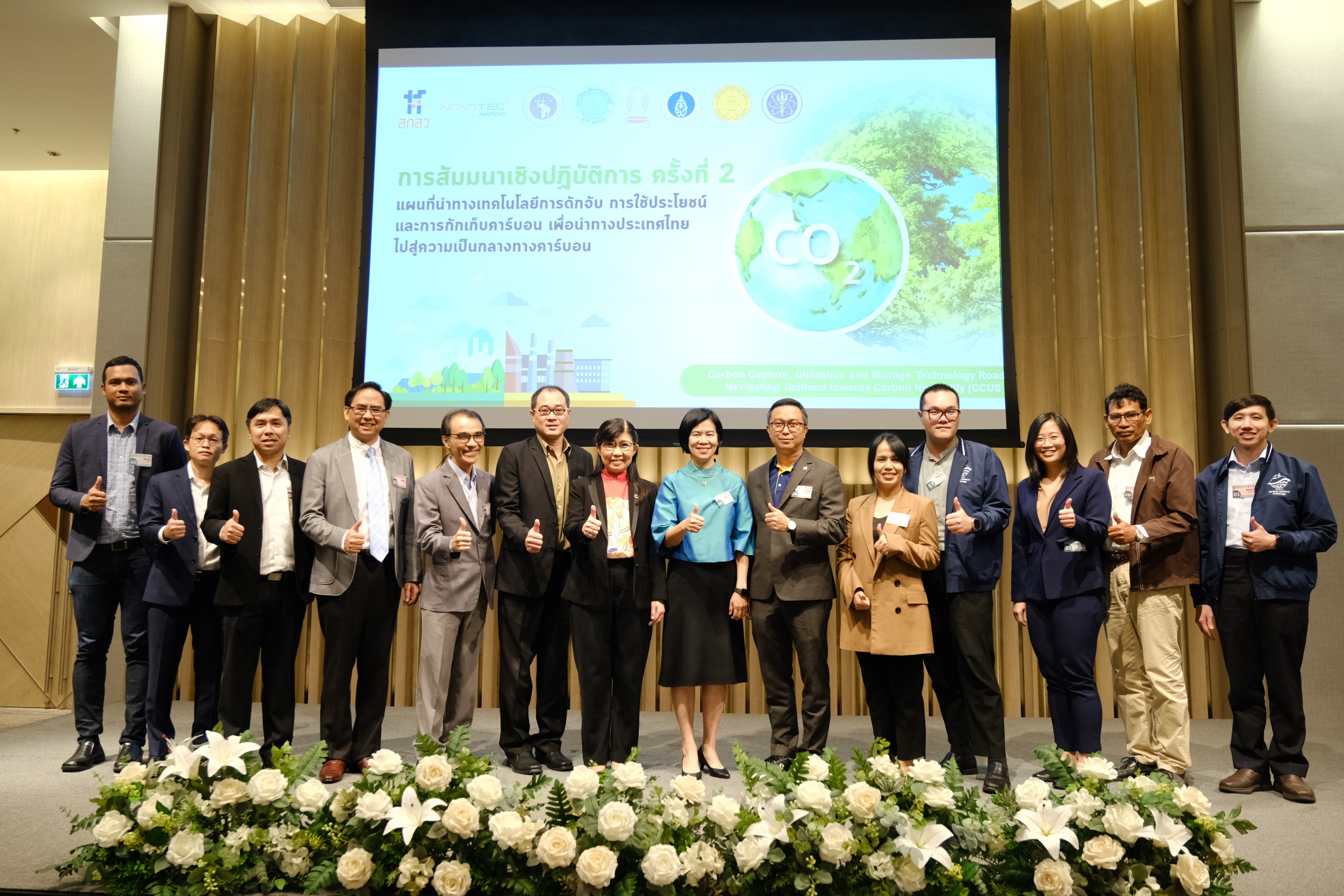 เมื่อวันที่ 12 กรกฎาคม 2566 ณ โรงแรมอัศวิน แกรนด์ คอนเวนชั่น - ศูนย์นาโนเทคโนโลยีแห่งชาติ (นาโนเทค) สำนักงานพัฒนาวิทยาศาสตร์และเทคโนโลยีแห่งชาติ (สวทช.) และเครือข่ายพันธมิตร นำโดย ดร.วรรณี ฉินศิริกุล ผู้อำนวยการ จัดการสัมมนาเชิงปฏิบัติการครั้งที่ 2 แผนที่นำทางเทคโนโลยีการดักจับ การใช้ประโยชน์และการกักเก็บคาร์บอน เพื่อนำทางประเทศไทยไปสู่ความเป็นกลางทางคาร์บอน หรือ CCUS TRM โดยการสนับสนุนของจากสำนักงานคณะกรรมการส่งเสริมวิทยาศาสตร์ วิจัย และนวัตกรรม (สกสว.) ซึ่งได้รับเกียรติจากหน่วยงานภาครัฐ อาทิ หน่วยงานวิจัย มหาวิทยาลัย หน่วยงานกำกับและขับเคลื่อนนโยบาย ตลอดจนภาคเอกชนผู้ใช้เทคโนโลยี CCUS เข้าร่วมกิจกรรมทั้งสิ้น 46 หน่วยงาน รวมผู้เข้าร่วมราว 130 คน