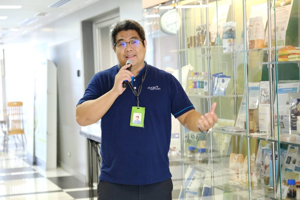ดร.กอบกุล เหล่าเท้ง ผู้อำนวยการกลุ่มแพลตฟอร์มบริการผลิตอาหารและส่วนผสมฟังก์ชัน (FoodSERP) สวทช. นำเสนอข้อมูลภาพรวมการให้บริการของแพลตฟอร์มบริการผลิตอาหารและส่วนผสมฟังก์ชัน (foodSERP) ที่ครอบคลุมตลอดห่วงโซ่การผลิต ตามโจทย์ที่เป็นความต้องการเฉพาะ (Tailor made) ของลูกค้า ในรูปแบบ One-stop service ที่มีทั้งในส่วนของ Production และ Testing services โดยได้มีการแบ่งกลุ่มผลิตภัณฑ์เป้าหมายออกเป็น 4 กลุ่ม ได้แก่ กลุ่ม Functional ingredients, กลุ่ม Food for specific group, กลุ่ม Alternative proteins และ กลุ่ม Functional extraction