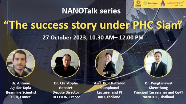 Apart from the visit, the delegates were invited to be the speakers at the hybrid NANOTalk series on “The success story under PHC Siam”. This event was organized with an aim to promote the European Synchrotron Radiation Facility (ESRF) for those interested in using the beamline synchrotron at Grenoble, France and to present information on PHC Siam scholarships and how to success in the research collaborations.