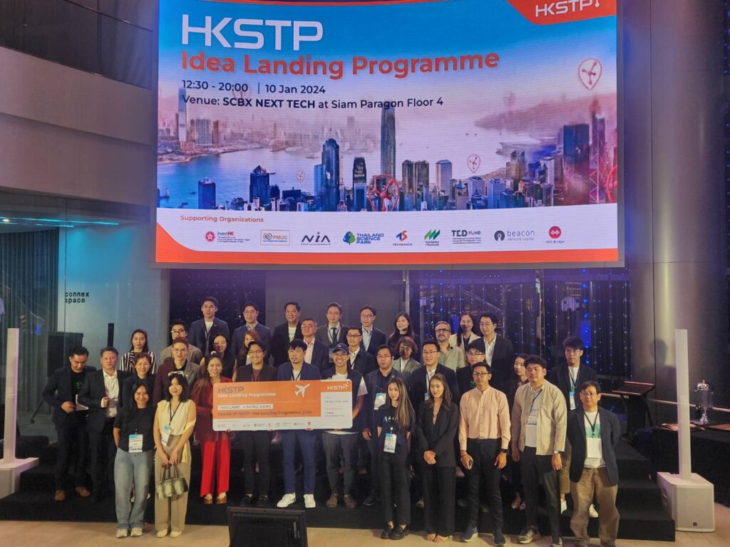 เมื่อวันที่ 10 มกราคม 2567 อุทยานวิทยาศาสตร์ประเทศไทย (TSP) และเมืองนวัตกรรมอาหาร (Food Innopolis) ร่วมกันสนับสนุนผู้ประกอบการ รวมถึงสตาร์ทอัพภายใต้ สวทช. (NSTDA Startup) ไป pitching เพื่อรับการสนับสนุนการทำธุรกิจในประเทศฮ่องกง (Landing Programme) ภายใต้โปรแกรม Idea Landing Programme @ HKSTP ที่อุทยานวิทยาศาสตร์ประเทศไทยร่วมมือกับ Hong Kong Science and Technology Park (HKSTP) เปิดตัว โดยเป็นโปรแกรมที่สร้างสรรค์ขึ้นเพื่อผลักดันผู้ประกอบการและสตาร์ทอัพที่มีศักยภาพในกลุ่ม Food Tech, Agricultural Tech, Green Tech และ Sustainability เข้าสู่การลงทุนในฮ่องกง และเปิดประตูสู่โปรแกรมการเงินต่างๆ ซึ่งเหมาะสำหรับผู้ประกอบการและสตาร์ทอัพที่ต้องการทำ Market Exploration and Validation ในตลาดในฮ่องกงและจีน