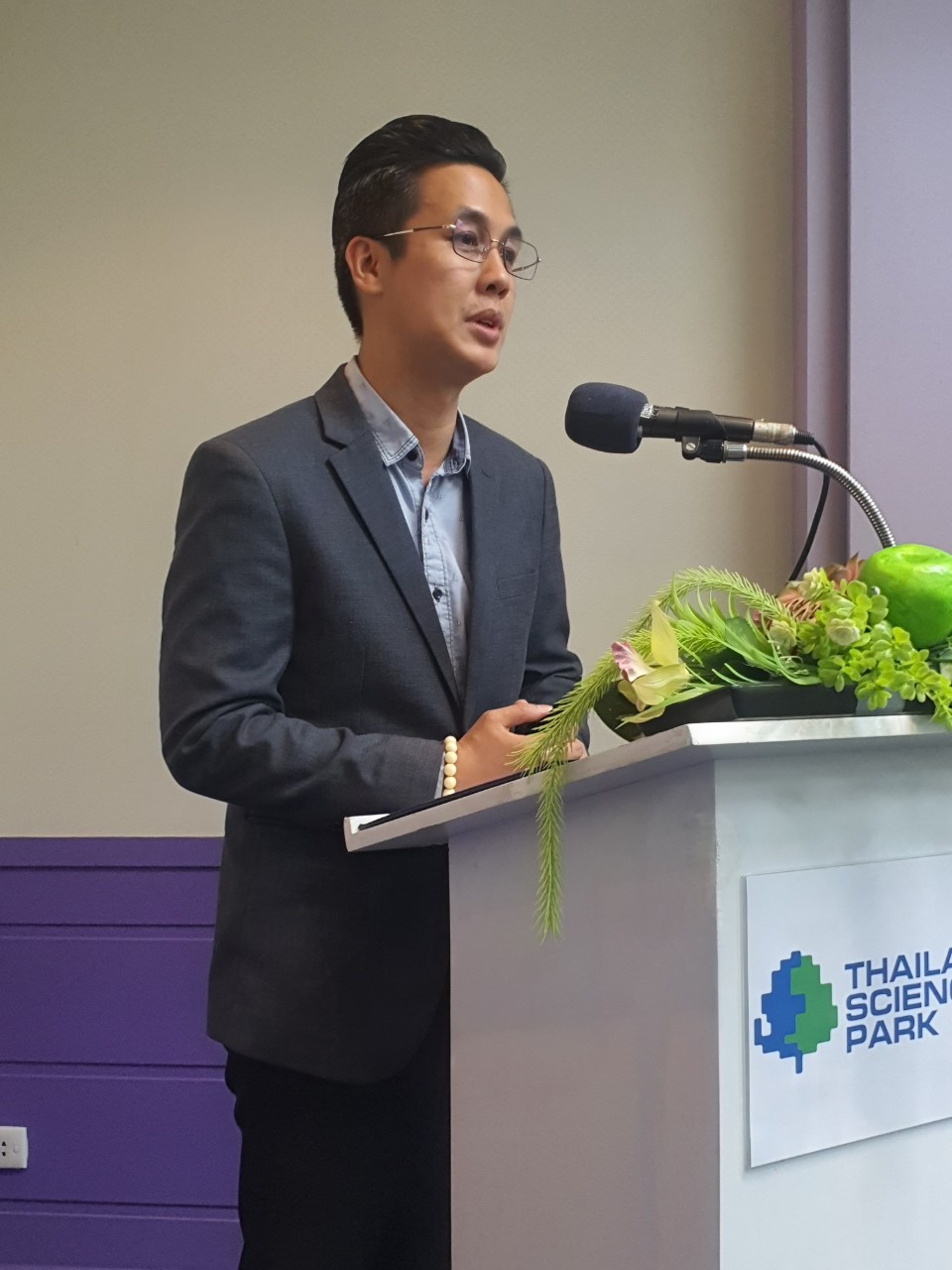 ดร. ศักดา ตรีเดช ผู้อำนวยการส่วนนวัตกรรมคุณภาพอากาศและเสียง กรมควบคุมมลพิษ นำเสนอเรื่อง การดำเนินการป้องกัน และแก้ไขปัญหาฝุ่นลอองขนาดเล็ก PM2.5 โดยได้กล่าวถึงแหล่งที่มาของฝุ่นในประเทศไทย รวมถึงการป้องกัน และติดตามสถานะการณ์ฝุ่นที่จะเกิดขึ้นอย่างต่อเนื่อง การอ่านค่าคุณภาพของอากาศ หรือ AQI และการใช้ supercomputer ในการประมวลข้อมูลที่เกี่ยวข้องจำนวนมากเพื่อประโยชน์ในแก้ไขและควบคุมปัญหาฝุ่น PM2.5 ในประเทศ