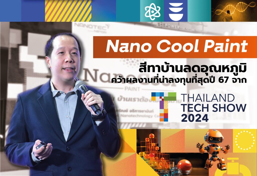 โลกร้อน บ้านร้อน ค่าไฟร้อนกว่า NANOTEC Newsletter ฉบับนี้ ขอชวนมาฟังไอเดียจาก “ดร. ศรัณย์ อธิการยานันท์” ที่ต่อยอดองค์ความรู้ และความเชี่ยวชาญด้านการเคลือบนาโน (Nano Coating) พัฒนา “Nano Cool Paint” สีทาภายนอกเพื่อลดอุณหภูมิพื้นผิว โดยสามารถลดอุณภูมิพื้นผิวได้ดีกว่าสีทั่วไป 3-4 องศา ตอบโจทย์ผู้บริโภคด้วยการช่วยลดค่าไฟฟ้าได้ดีกว่าสีทั่วไปถึง 15% จนสามารถคว้ารางวัล “ผลงานที่น่าลงทุนที่สุดปี 67” จากเวที Investment Pitching ในงาน Thailand Tech Show 2024 Science for Exponential Growth: Tech to Biz พร้อมส่งต่อผู้ประกอบการเพื่อต่อยอดเชิงพาณิชย์