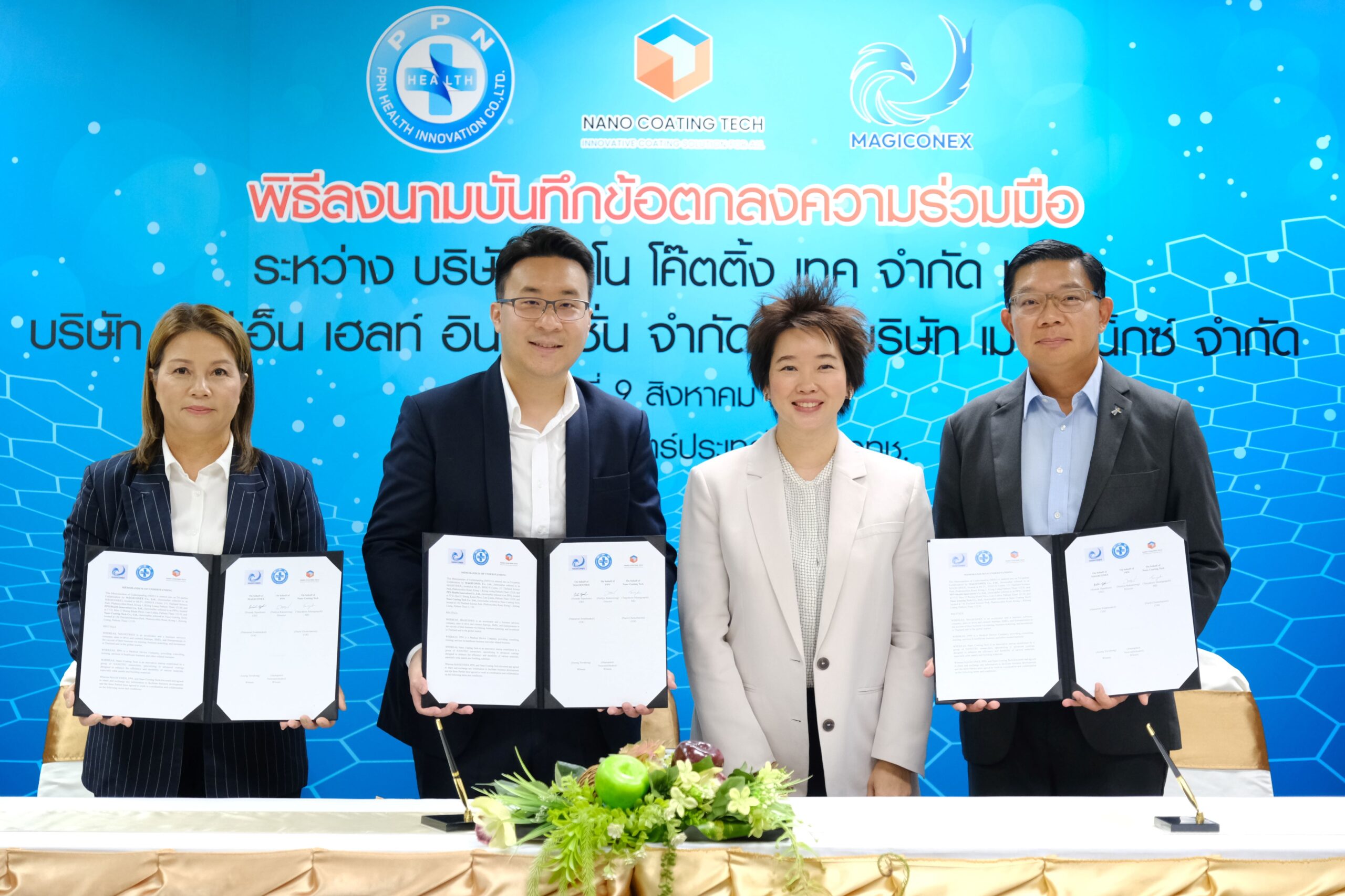 การจับมือกับพันธมิตรทางธุรกิจ Technopreneur ที่มีศักยภาพ ได้แก่ บริษัท พีพีเอน เฮลท์ อินโนเวชั่น จำกัด และ บริษัท เมจิโคเนกซ์ จำกัด เพื่อช่วยผลักดันการใช้ประโยชน์ในอุตสาหกรรมให้แพร่หลายมากขึ้น เครือข่ายพันธมิตร 3 บริษัทจึงตกลงที่จะทำบันทึกข้อตกลงความร่วมมือขึ้น ในการผลักดันให้เกิดการใช้ประโยชน์ของผลิตภัณฑ์สารเคลือบนาโน โดยจะช่วยผลักดันการจับคู่ทางธุรกิจในอุตสาหกรรมเป้าหมาย, ส่งเสริมให้เกิดการใช้งานสารเคลือบนาโนในอุตสาหกรรมบนพื้นผิวที่หลากหลายมากขึ้น รวมไปถึงช่วยส่งเสริมสนับสนุนให้เกิดการใช้นวัตกรรมผลิตภัณฑ์สารเคลือบนาโน ให้แพร่หลายทั้งในประเทศและต่างประเทศ ซึ่งภายในงาน ได้รับเกียรติจาก ดร. อุรชา รักษ์ตานนท์ชัย ผู้อำนวยการศูนย์นาโนเทคโนโลยีแห่งชาติ (นาโนเทค) สวทช. ร่วมแสดงความยินดีพร้อมบรรยายพิเศษเรื่อง การประยุกต์ใช้นาโนเทคโนโลยีในอุตสาหกรรมเพื่อการพัฒนาที่ยั่งยืน