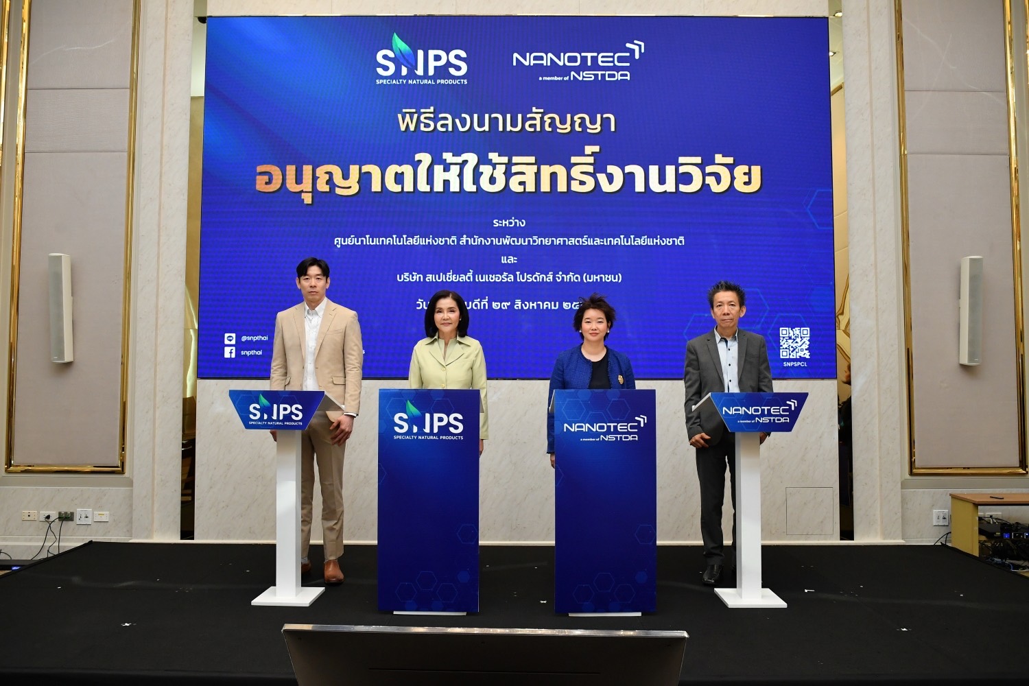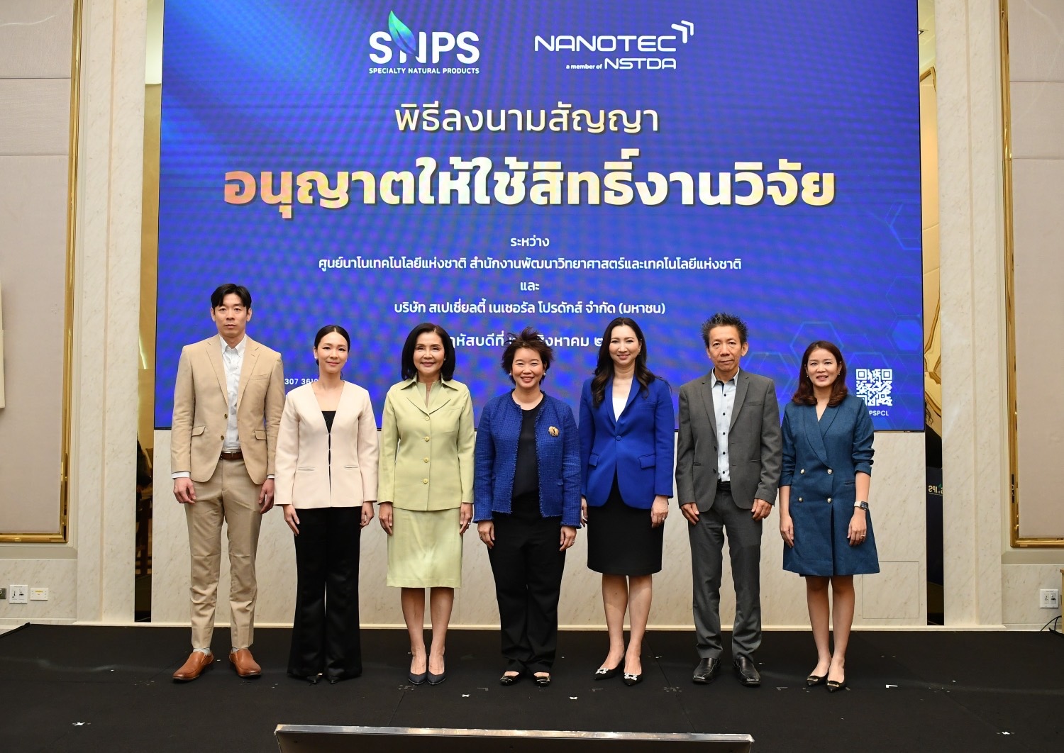 สำนักงานพัฒนาวิทยาศาสตร์และเทคโนโลยีแห่งชาติ (สวทช.) กระทรวงการอุดมศึกษา วิทยาศาสตร์ วิจัยและนวัตกรรม (อว.) โดย ศูนย์นาโนเทคโนโลยีแห่งชาติ (นาโนเทค) ต่อยอด “สารสกัดกระชายดำ” สู่การพัฒนาผลิตภัณฑ์ พร้อมจับมือ SNPS หรือบริษัท สเปเชี่ยลตี้ เนเชอรัล โปรดักส์ จำกัด (มหาชน) ลงนามอนุญาตให้สิทธิใช้ประโยชน์ผลงานวิจัย ร่วมขับเคลื่อนงานวิจัยสู่ผลิตภัณฑ์นวัตกรรมกลุ่ม Active ingredients ผลิตภัณฑ์เวชสำอาง-เสริมอาหาร รับความต้องการตลาดผลิตภัณฑ์เพื่อสุขภาพและความงามของโลก หนุนโมเดลเกษตรกรรมแบบยั่งยืน เพิ่มขีดความสามารถในการแข่งขันด้วยกลไก S&T for Sustainable Thailand ของ สวทช.
