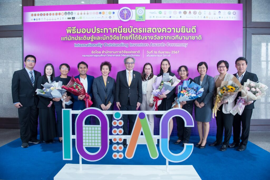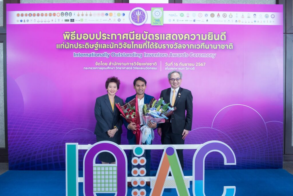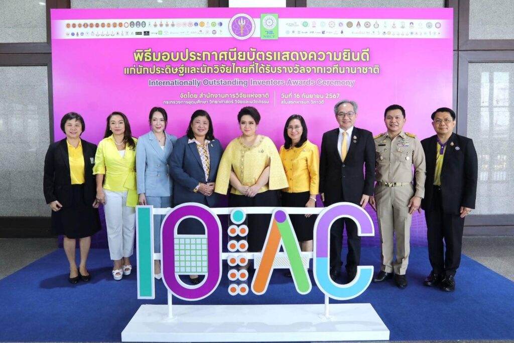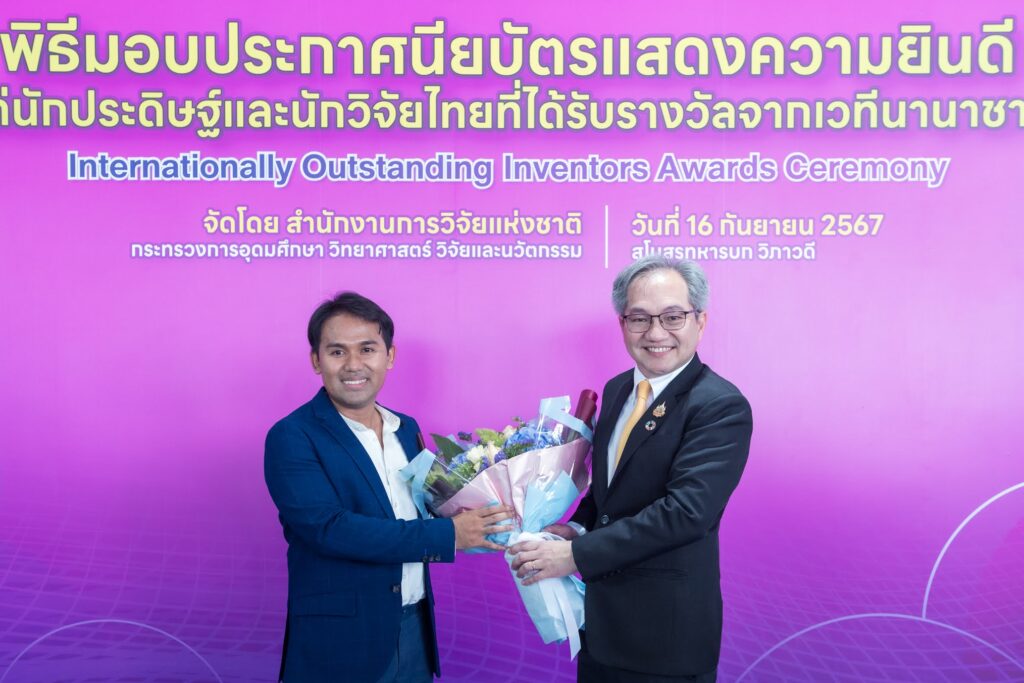 (16 ก.ย. 67) สำนักงานพัฒนาวิทยาศาสตร์และเทคโนโลยีแห่งชาติ (สวทช.) นำโดย ศาสตราจารย์ ดร.ชูกิจ ลิมปิจำนงค์ ผู้อำนวยการ สวทช. พร้อมด้วย ดร. อุรชา รักษ์ตานนท์ชัย ผู้อำนวยการศูนย์นาโนเทคโนโลยีแห่งชาติ (นาโนเทค) ร่วมแสดงความยินดีกับนักวิจัย สวทช. ในพิธีมอบประกาศนียบัตรและกล่าวแสดงความยินดีแก่นักประดิษฐ์และนักวิจัยไทยที่ได้รับรางวัลจากเวทีนานาชาติ โดยสำนักงานการวิจัยแห่งชาติ (วช.) ซึ่งได้รับเกียรติจาก นางสาวศุภมาส อิศรภักดี รัฐมนตรีว่าการกระทรวงการอุดมศึกษา วิทยาศาสตร์ วิจัยและนวัตกรรม (อว.) เป็นประธานในพิธี โดยมีดร.วิภารัตน์ ดีอ่อง ผู้อํานวยการสำนักงานการวิจัยแห่งชาติ (วช.) เป็นผู้กล่าวรายงาน ณ ห้องมัฆวานรังสรรค์ ชั้น 3 สโมสรทหารบก วิภาวดี