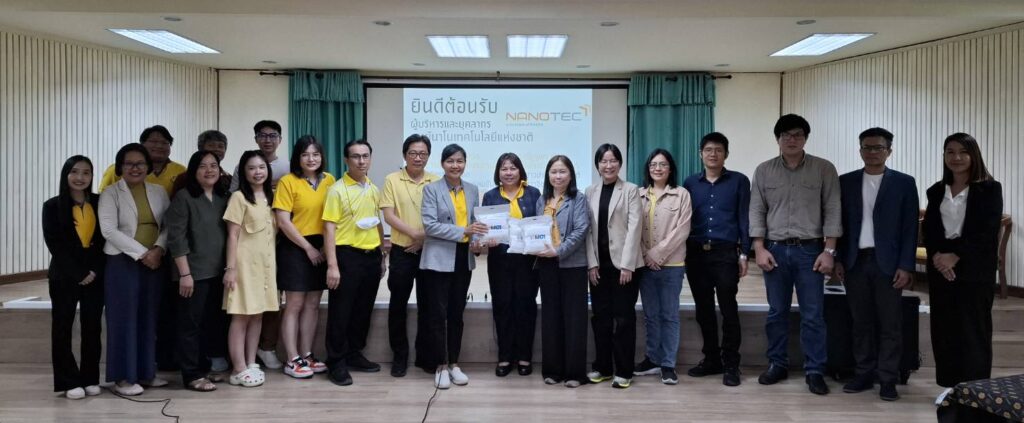 วันที่ 4 พฤศจิกายน 2567 นาโนเทค สวทช. นำโดย ศ. ดร.ศิวพร มีจู สมิธ รักษาการรองผู้อำนวยการศูนย์นาโนเทคโนโลยีแห่งชาติ (นาโนเทค) สำนักงานพัฒนาวิทยาศาสตร์และเทคโนโลยีแห่งชาติ (สวทช.), ดร.ณัฏฐพร พิมพะ ผู้อำนวยการกลุ่มวิจัยการเร่งปฏิกิริยาระดับนาโนการดูดซับและการคำนวณ, ดร.วีรกัญญา มณีประกรณ์ ผู้อำนวยการกลุ่มวิจัยวัสดุตอบสนองและเซ็นเซอร์ระดับนาโน พร้อมด้วยคณะนักวิจัย นาโนเทค ประชุมหารือร่วมกับมหาวิทยาลัยราชภัฏลำปาง โดยได้รับเกียรติจาก ผศ. ดร.หฤทัย ไทยสุชาติ คณบดีคณะวิทยาศาสตร์ ให้การต้อนรับ โดย ศ. ดร.ศิวพร ได้แนะนำทีมผู้บริหารชุดใหม่ และนำเสนอพันธกิจหลักในการดำเนินการวิจัยและพัฒนาตอบโจทย์ภาคอุตสาหกรรม ผลักดันเทคโนโลยียกระดับคุณภาพชีวิตประชาชน และส่งเสริมธุรกิจนวัตกรรม