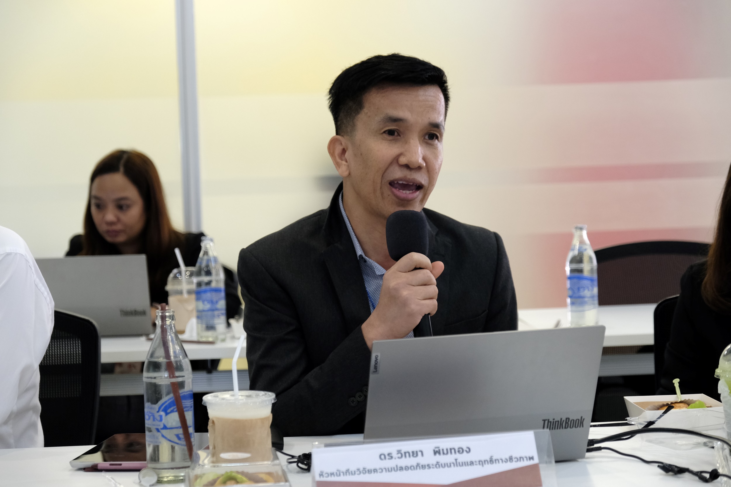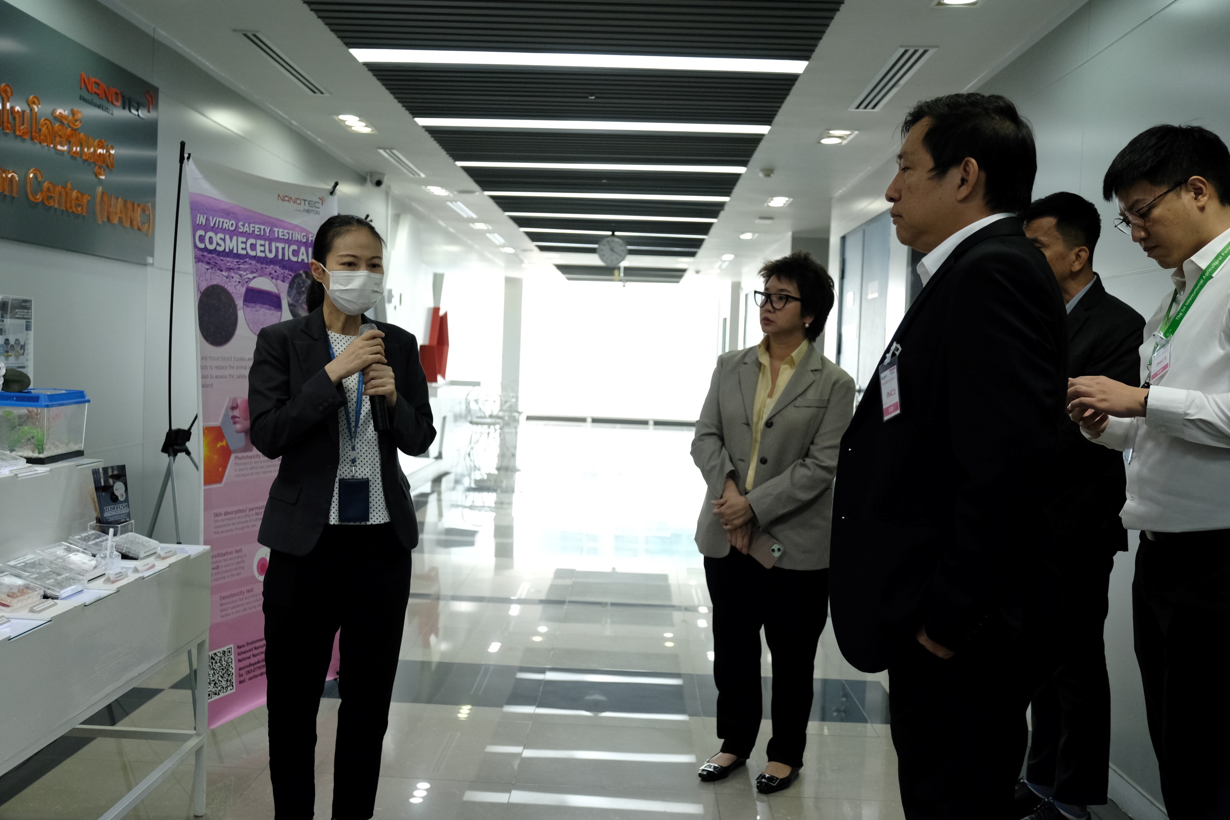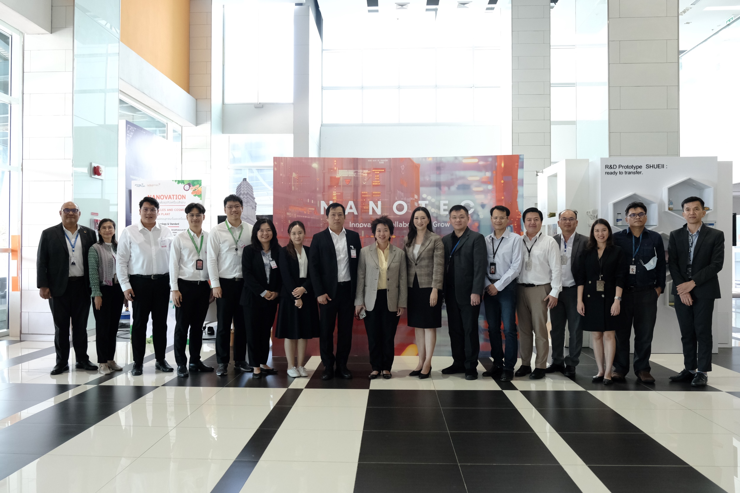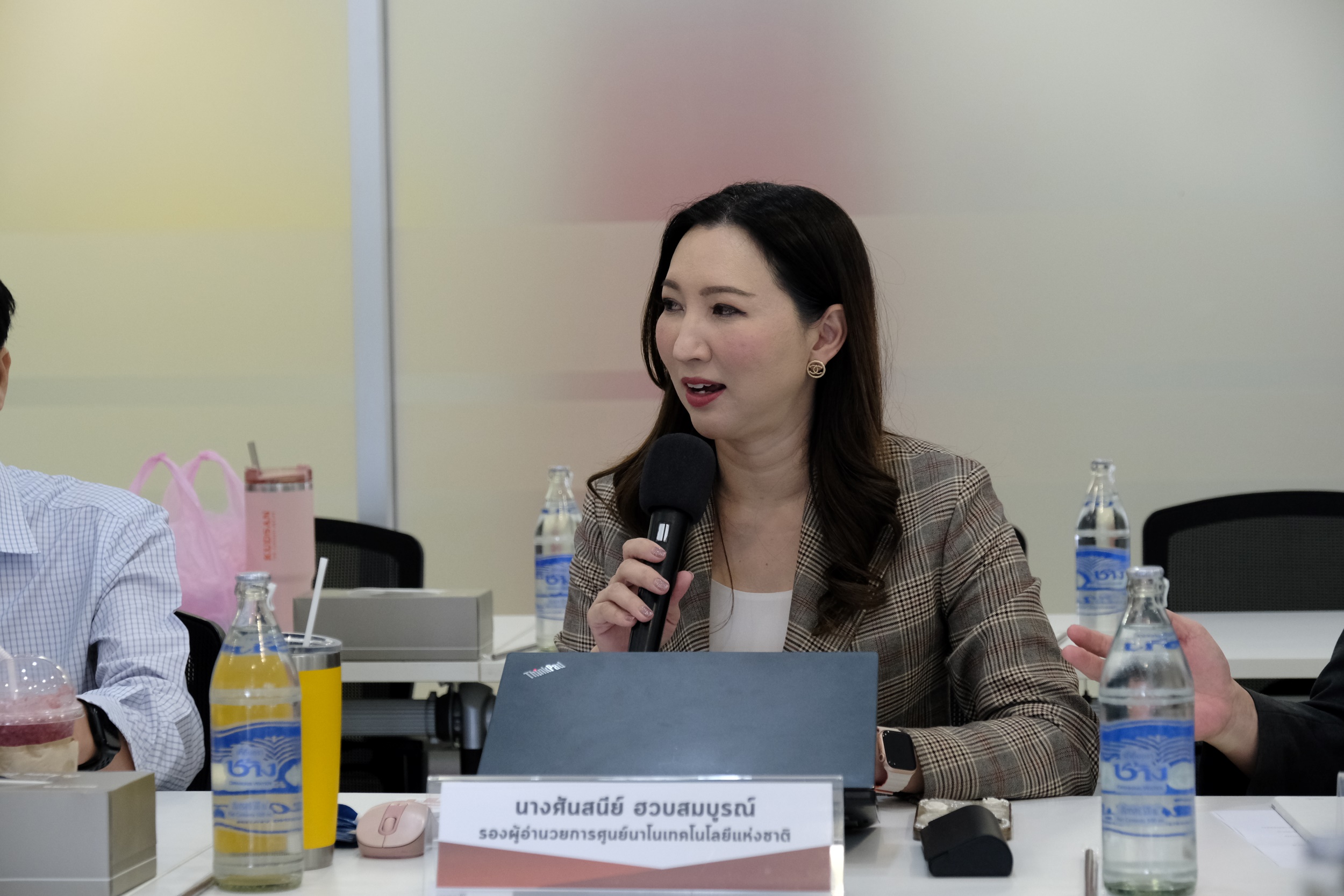 วันที่ 9 ธันวาคม 2567 ณ อุทยานวิทยาศาสตร์ประเทศไทย จังหวัดปทุมธานี - ศูนย์นาโนเทคโนโลยีแห่งชาติ (นาโนเทค) สำนักงานพัฒนาวิทยาศาสตร์และเทคโนโลยีแห่งชาติ (สวทช.) นำโดย ดร. อุรชา รักษ์ตานนท์ชัย ผู้อำนวยการศูนย์นาโนเทค, ดร. วิยงค์ กังวานศุภมงคล และคุณศันสนีย์ ฮวบสมบูรณ์ รองผู้อำนวยการ พร้อมด้วยทีมนักวิจัย ให้การต้อนรับสถาบัน เค อะโกรอินโนเวท (K Agro Innovate) ภายใต้มูลนิธิกสิกรไทยของธนาคารกสิกรไทย นำโดย คุณอนันต์ ลาภสุขสถิต ประธานสถาบัน เค อะโกรอินโนเวท ในโอกาสหารือความร่วมมือและขยายผลการใช้ประโยชน์ผลงานวิจัยด้านนาโนเทคโนโลยีที่จะเกิดขึ้นในอนาคต พร้อมเข้าเยี่ยมชม 3 ห้องปฏิบัติการ ได้แก่ ห้องปฏิบัติการทีมวิจัยนาโนเทคโนโลยีทางการแพทย์และสัตวแพทย์, ห้องปฏิบัติการทีมวิจัยเกษตรนาโนขั้นสูง และห้องปฏิบัติการทีมวิจัยความปลอดภัยระดับนาโนและฤทธิ์ทางชีวภาพ