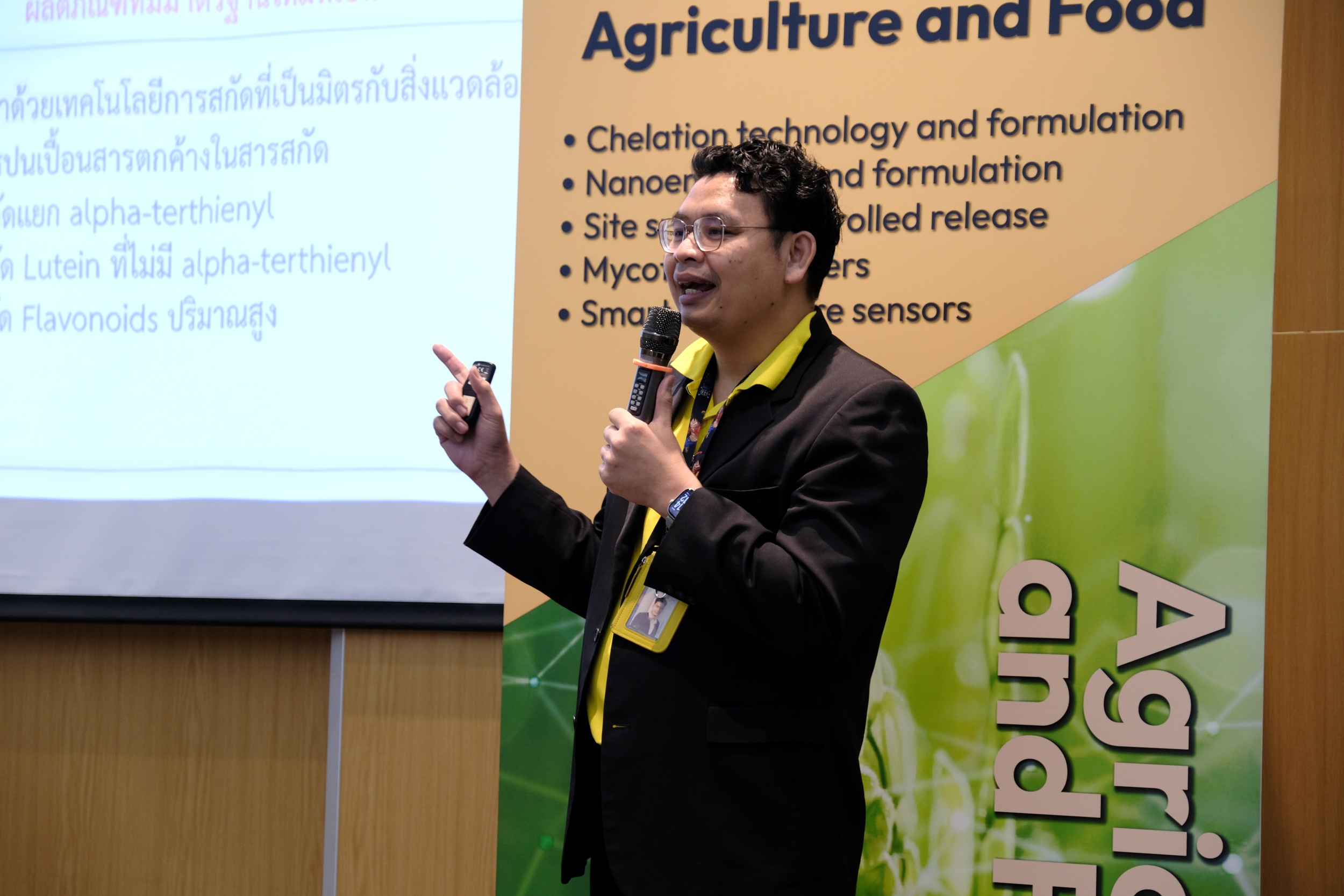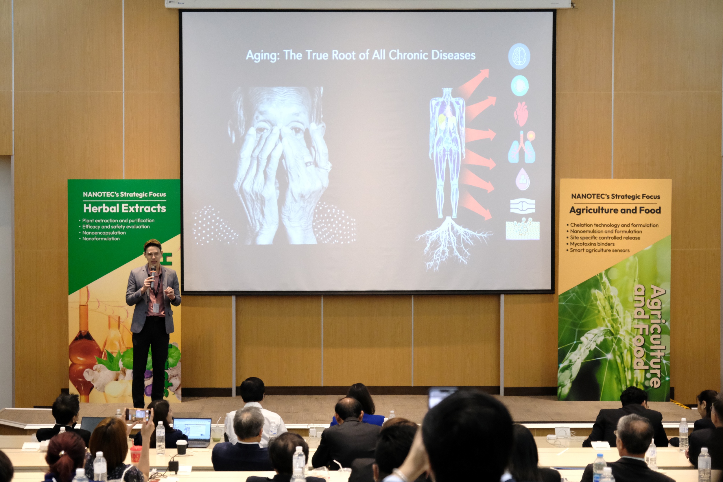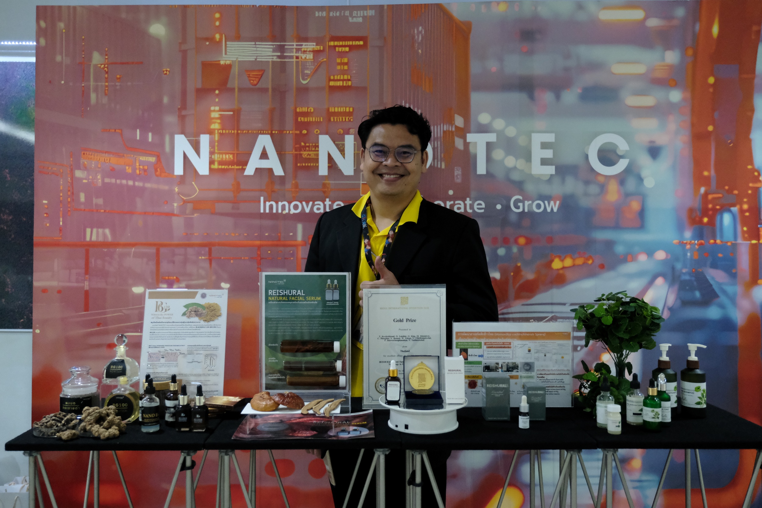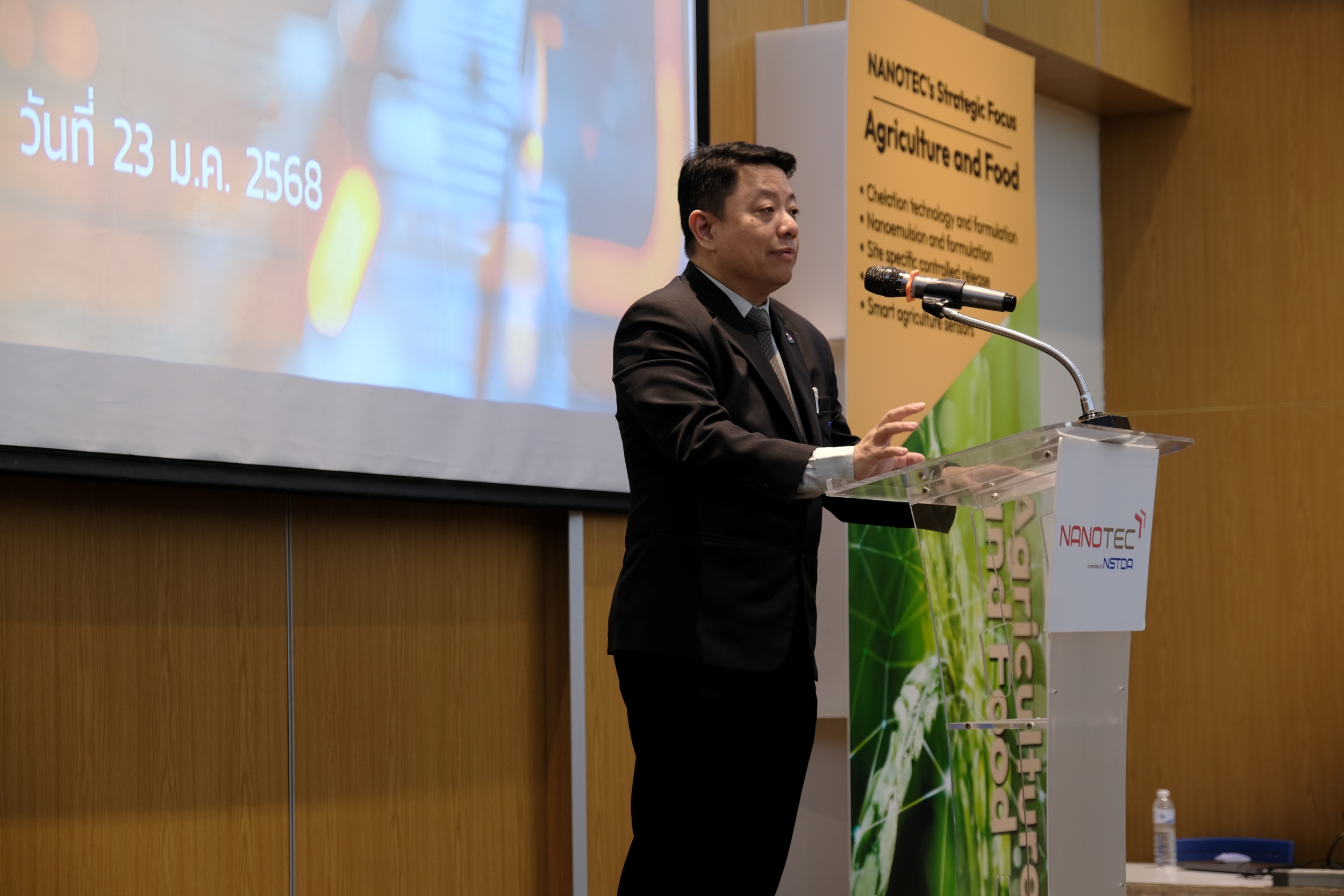 วันที่ 23 มกราคม 2568 ณ อุทยานวิทยาศาสตร์ประเทศไทย ปทุมธานี - ดร. อุรชา รักษ์ตานนท์ชัย ผู้อำนวยการศูนย์นาโนเทคโนโลยีแห่งชาติ (นาโนเทค) สำนักงานพัฒนาวิทยาศาสตร์และเทคโนโลยีแห่งชาติ (สวทช.) พร้อมด้วยดร. วิยงค์ กังวานศุภมงคล รองผู้อำนวยการนาโนเทค ดร. ศิวพร มีจู สมิธ รักษาการรองผู้อำนวยการนาโนเทค และคุณศันสนีย์ ฮวบสมบูรณ์ รองผู้อำนวยการนาโนเทค พร้อมด้วยคณะนักวิจัยนาโนเทค ร่วมต้อนรับคณะจากสภาอุตสาหกรรมแห่งประเทศไทย ( ส.อ.ท.) กลุ่มอุตสาหกรรมสุขภาพและความงาม นำโดยคุณวิวรรธน์ เหมมณฑารพ รองประธาน ส.อ.ท. และ ประธานสถาบันนวัตกรรม พร้อมด้วยคุณนาคาญ์ ทวิชาวัฒน์ ประธานกรรมการคลัสเตอร์อุตสาหกรรมสุขภาพและความงาม ส.อ.ท. และสมาชิก ส.อ.ท. ที่เข้าร่วมงานขุมพลังสมุนไพรไทยสู่อนาคตแห่งอุตสาหกรรมสมุนไพรโลก ภายใต้โครงการสร้างความร่วมมือระหว่างสภาอุตสาหกรรมแห่งประเทศไทย กลุ่มอุตสาหกรรมสุขภาพและความงาม และนาโนเทค สวทช. พร้อมรับฟังการนำเสนอศักยภาพด้านการวิจัยและพัฒนาที่เกี่ยวข้องกับอุตสาหกรรมสุขภาพและความงาม อาทิ สารสกัดกระชายดำ และอนุภาคกักเก็บสารสำคัญจากกระชายดำที่พร้อมอนุญาตสิทธิใช้ประโยชน์ผลงานวิจัยให้กลุ่มสมาชิก ส.อ.ท. และกระบวนการสกัดสารสกัดที่น่าสนใจสำหรับผลิตภัณฑ์เสริมอาหารและอาหาร/เครื่องดื่ม อาทิ สารสกัดเห็ดหลินจือ, สารสกัดจากดอกดาวเรือง, สารสกัดจากน้ำมันฟักข้าว นอกจากนี้ ยังมีการนำเสนอข้อมูลโรงงานต้นแบบผลิตอนุภาคนาโน เพื่อผลิตภัณฑ์อาหารและเสริมอาหาร, บริการวิเคราะห์ทดสอบประสิทธิภาพและความปลอดภัย และกรณีศึกษาเรื่อง ความสำเร็จจากห้องปฏิบัติการสู่ผู้ประกอบการ บริษัท โครโนไลฟ์ จำกัด ดีปเทคสตาร์ทอัพจากงานวิจัยของนาโนเทค สวทช. อีกด้วย