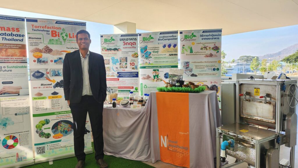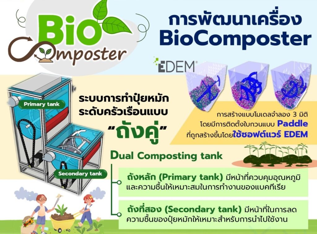 ดร. สัญชัย คูบูรณ์ นักวิจัยจากทีมวิจัยตัวเร่งปฏิกิริยา กลุ่มวิจัยการเร่งปฏิกิริยาระดับนาโน การดูดซับ และการคำนวณ ศูนย์นาโนเทคโนโลยีแห่งชาติ (นาโนเทค) สำนักงานพัฒนาวิทยาศาสตร์และเทคโนโลยีแห่งชาติ (สวทช.) กล่าวว่า เครื่อง BioComposter ระบบถังคู่ขนาด 5 – 10 กิโลกรัม ใช้สำหรับการทำปุ๋ยหมักชีวภาพระดับครัวเรือน เป็นโครงการวิจัยและพัฒนาเพื่อลดปริมาณขยะอินทรีย์ที่มาจากขยะอาหาร และลดการเผาวัสดุเหลือทิ้งทางการเกษตร นำไปสู่การลดก๊าซเรือนกระจกต้นตอของภาวะโลกร้อน โดยเฉพาะก๊าซมีเทน (CH4) และก๊าซคาร์บอนไดออกไซด์ (CO2) และยังช่วยลดฝุ่น PM2.5 อีกด้วย