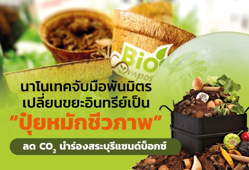 จากชีวมวลเหลือทิ้งทางการเกษตร รวมถึงขยะอาหาร ถ้าคำนวณจากขยะอาหารที่ถูกทิ้งทั่วโลก พบว่า มีการปลดปล่อยก๊าซเรือน กระจกมากถึง 8% นอกจากนี้ หากนำอาหารมาเปลี่ยนเป็นปุ๋ยด้วยกระบวนการย่อยสลายที่เกิดจากการหมัก ก่อให้เกิดก๊าซมีเทนซึ่งเป็นก๊าซเรือนกระจก ที่ส่งผลต่อภาวะโลกร้อน รวมถึงเป็นแหล่งเชื้อโรค และกลิ่นเหม็นรบกวน NANOTEC Newsletter ฉบับนี้ จะพาไปคุยกับ “ดร. เล็ก-สัญชัย คูบูรณ์” นักวิจัยจากนาโนเทค สวทช. และทีมวิจัย ที่พัฒนาเครื่องย่อยระบบถังคู่ (BioComposter) พร้อมใบพัดที่ออกแบบให้เร่งกระบวนการย่อยสลาย ตัวช่วยเปลี่ยน “ขยะอินทรีย์” ไม่ว่าจะเป็นของเหลือทางการเกษตร หรือขยะเศษอาหาร สู่ “ปุ๋ยหมักชีวภาพ” พร้อมจับมือไบโอเทค พัฒนาหัวเชื้อจุลินทรีย์เฉพาะสำหรับขยะอินทรีย์ในไทย หนุนลดการปลดปล่อยก๊าซมีเทนและก๊าซคาร์บอนไดออกไซด์จากขยะอินทรีย์ที่มาจากขยะอาหารและวัสดุเหลือทิ้งทางการเกษตร ต้นตอภาวะโลกร้อน-ฝุ่น PM2.5