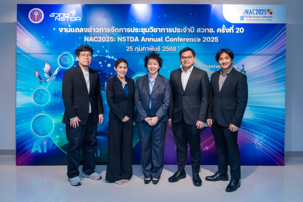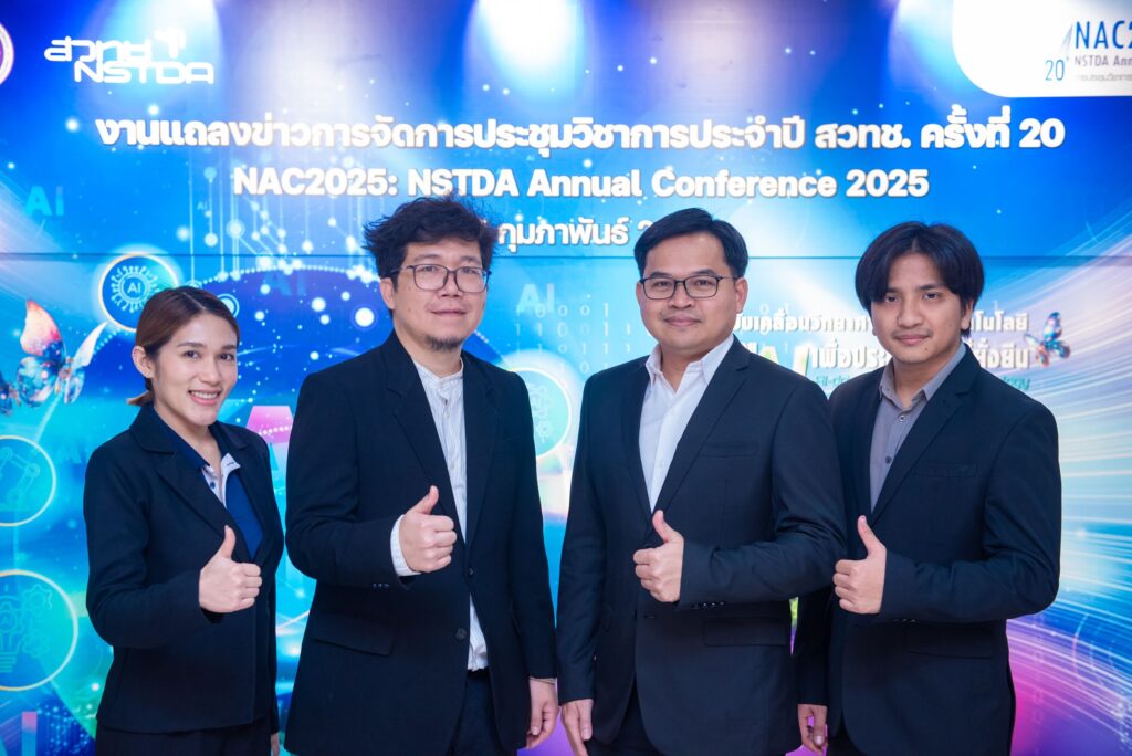 (25 กุมภาพันธ์ 2568) ณ ห้องแถลงข่าว ชั้น 1 อาคารพระจอมเกล้า กระทรวงการอุดมศึกษา วิทยาศาสตร์ วิจัยและนวัตกรรม (อว.): ศาสตราจารย์ ดร.ชูกิจ ลิมปิจำนงค์ ผู้อำนวยการสำนักงานพัฒนาวิทยาศาสตร์และเทคโนโลยีแห่งชาติ (สวทช.) ดร.ชัย วุฒิวิวัฒน์ชัย ผู้อำนวยการศูนย์เทคโนโลยีอิเล็กทรอนิกส์และคอมพิวเตอร์แห่งชาติ (เนคเทค) พร้อมด้วยทีมนักวิจัย สวทช. ภายใต้กระทรวง อว. และหน่วยงานพันธมิตร ร่วมงานแถลงข่าวการจัดการประชุมวิชาการประจำปี สวทช. ครั้งที่ 20 (20th NSTDA Annual Conference: NAC2025) ภายใต้แนวคิด “ขับเคลื่อนวิทยาศาสตร์และเทคโนโลยีด้วย AI เพื่อประเทศไทยที่ยั่งยืน: AI-driven Science and Technology for Sustainable Thailand” ซึ่งจะจัดขึ้นระหว่างวันที่ 26-28 มีนาคม 2568 ที่อุทยานวิทยาศาสตร์ประเทศไทย อ.คลองหลวง จ.ปทุมธานี