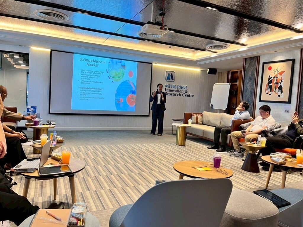 เมื่อวันที่ 22 พฤษภาคม 2568 ณ เวลา 13.30 – 15.30 น. ณ ศูนย์นวัตกรรมและการวิจัยมิตรผล (ศูนย์ขอนแก่น) ศูนย์นาโนเทคโนโลยีแห่งชาติ สวทช. โดย ดร.เดือนเพ็ญ จาปรุง นักวิจัยอาวุโส นาโนเทค และผู้อำนวยการขับเคลื่อนแผนงานนวัตกรรมชุดตรวรวดเร็ว สวทช. พร้อมด้วยคุณนพดร ปัญญาจงถาวร รองผู้อำนวยการฝ่ายงานส่งเสริมมาตรฐานวิชาชีพชั้นสูง สถาบันพัฒนาบุคลากรแห่งอนาคต สวทช. ร่วมกับ หน่วยบริหารและจัดการทุนด้านการเพิ่มความสามารถในการแข่งขันของประเทศ (บพข.) จัดกิจกรรมประชุมระดมความคิดเห็นเฉพาะกลุ่ม (Focus group) ผู้ประกอบการและหอการค้าจังหวัดขอนแก่น ภายใต้ประเด็นการศึกษากรอบโจทย์การประยุกต์ใช้เทคโนโลยีชีววิทยาสังเคราะห์เพื่อพัฒนาและผลักดันวัสดุชีวภาพสู่การใช้ประโยชน์เชิงพาณิชย์ โดยภายในงานได้รับเกียรติจาก คุณชาญณรงค์ บุริสตระกูล ประธานหอการค้ากลุ่มภาคตะวันออกเฉียงเหนือตอนกลาง เป็นประธานกล่าวต้อนรับและกล่าวเปิดงาน ก่อนนำเข้าสู่การนำเสนอภาพรวมบทบาทและพันธกิจของ สวทช. และนาโนเทค โดย คุณปฤษฎา หิรัญบูรณะ ที่ปรึกษาอาวุโส นาโนเทค สวทช. ต่อด้วยการนำเสนอข้อมูลที่มาและวัตถุประสงค์ของกิจกรรม โดย ดร.เดือนเพ็ญ จาปรุง และแนวทางการสนับสนุนทุนวิจัยให้กับผู้ประกอบการ โดย คุณ ธนโชติ โสตเนียม เจ้าหน้าที่บริหารโครงการ บพข.