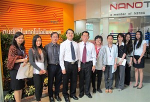 เมื่อวันที่ 8 มกราคม ที่ศูนย์นาโนเทคโนโลยีแห่งชาติ (นาโนเทค) อ.คลองหลวง จ.ปทุมธานี นพ.สิริฤกษ์ ทรงศิวิไล ผู้อำนวยการศูนย์นาโนเทคโนโลยีแห่งชาติ (นาโนเทค) พร้อมด้วย ภญ.ฉลอง เลาจริยกุล รองผู้อำนวยการศูนย์ฯ (ด้านวิจัยและพัฒนา ) สำนักงานพัฒนาวิทยาศาสตร์และเทคโนโลยี (สวทช.) ให้การต้อนรับ นายสมศักดิ์ ฉากเขียน รักษาการผู้อำนวยการสถาบันมาตรวิทยาแห่งชาติ(มว.) และคณะนักวิจัยของ มว. ในโอกาสเข้าเยี่ยมชม ศูนย์นาโนเทค เพื่อศึกษาวิธีการใช้งานของอุปกรณ์ต่างๆที่ใช้ทดสอบและสอบเทียบผลการวิจัย พร้อมกันนี้นายสมศักดิ์ได้มีการหารือกับผู้บริหารของนาโนเทค ถึงความร่วมมือในการยกระดับการวิเคราะห์ทดสอบด้านนาโนเทคโนโลยี โดยใช้ดึงความรู้ด้านมาตรวิทยามาประยุกต์ใช้กับการวิเคราะห์ทดสอบอนุภาคนาโนด้วย