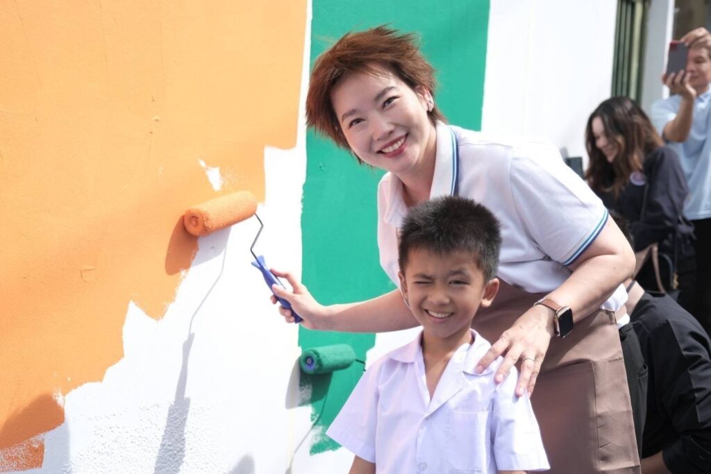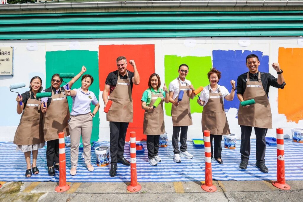 วันที่ 4 กรกฎาคม 2568 ณ ศูนย์เด็กปฐมวัยเมอร์ซี่ กทม. – กระทรวงการอุดมศึกษา วิทยาศาสตร์ วิจัยและนวัตกรรม (อว.) สำนักงานพัฒนาวิทยาศาสตร์และเทคโนโลยีแห่งชาติ (สวทช.) โดย ศูนย์นาโนเทคโนโลยีแห่งชาติ (นาโนเทค) ร่วมกับโรงแรมแบงค็อก แมริออท มาร์คีส์ ควีนส์ปาร์ค, บริษัท เบเยอร์ จำกัด และกรุงเทพมหานคร เปิดตัวโครงการ “โรงเรียนปลอดภัย ห่างไกลอัคคีภัยด้วยนวัตกรรมจากขยะอาหาร” ส่งต่อนวัตกรรมสารหน่วงไฟแคลเซียมคาร์บอเนตแปรรูปจากขยะเปลือกหอยสู่ “สีหน่วงไฟ” สีทาภายในอาคาร นำร่องลงพื้นที่ทาสีอาคาร ณศูนย์เด็กปฐมวัยเมอร์ซี่ (HDF Mercy Centre) เขตคลองเตย ก่อนขยายสู่พื้นที่ต่างๆ หวังยกระดับความปลอดภัยจากอัคคีภัยแก่ศูนย์เด็กเล็กในพื้นที่ชุมชนต่างๆ