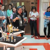 ดร. อิศรา สระมาลา นักวิจัยห้องปฏิบัติการระบบนำส่ง กำลังอธิบายความรู้ด้านนาโนเทคโนโลยี ผ่านผลงานวิจัยของห้องปฏิบัติการระบบนำส่ง และห้องปฏิบัติการอื่นๆ ให้แก่ สมาคมสโมสรนักลงทุน (IC) สังกัด บีโอไอ (BOI) รับฟังอย่างตั้งใจ