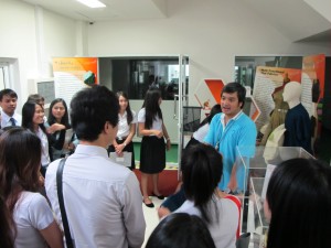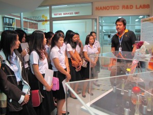 โดยมีเจ้าหน้าที่ จากงานประชาสัมพันธ์และสร้างความตระหนัก ให้การต้อนรับและอธิบายงานวิจัยด้านนาโนเทคโนโลยี เมื่อวันที่ 14 มีนาคม 2556