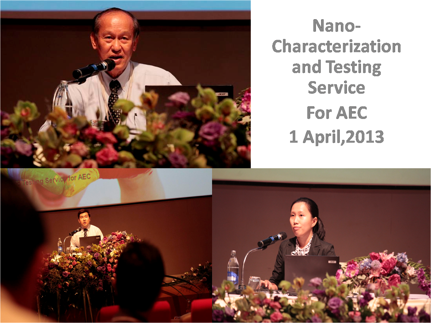 ศูนย์นาโนเทคโนโลยีแห่งชาติ (นาโนเทค) สวทช. จัดสัมมนา หัวข้อ “การวิเคราะห์ทดสอบด้านนาโนเทคโนโลยีของประเทศไทยเพื่อเตรียมความพร้อมสู่การเป็นประชาคมเศรษฐกิจอาเซียน” (Nano-Characterization and Testing Service For AEC) ในงาน การประชุมวิชาการประจำปี 2556 สวทช.(NAC 2013) วันที่ 1 เมษายน ที่อาคารศูนย์ประชุมอุทยานวิทยาศาสตร์ประเทศไทย (CC)อ.คลองหลวง จ.ปทุมธานี