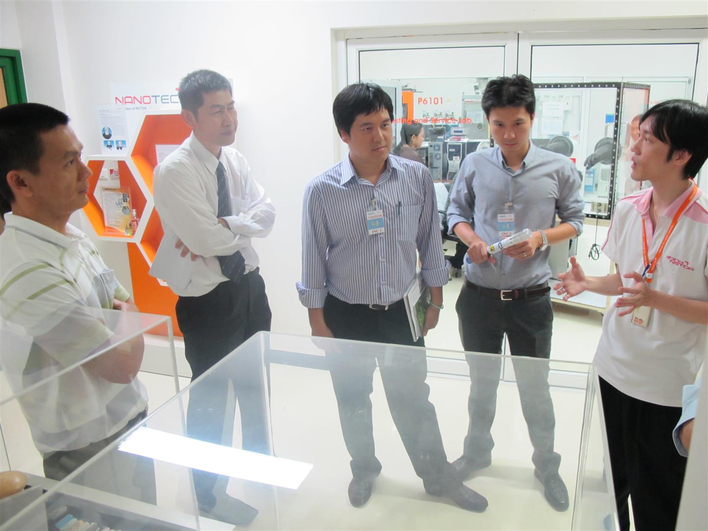 บริษัท น้ำตาลบ้านโป่ง จำกัด เยี่ยมชมห้องปฏิบัติการวัสดุนาโนเพื่อพลังงานและการเร่งปฏิกิริยา โดยมี รศ.ดร.ประเสริฐ ภวสันต์ และดร.นาวิน วิริยะเอี่ยมพิกุล นักวิจัยห้องปฏิบัติการให้การต้อนรับ ทั้งนี้ผู้เข้ายี่ยมชมจากบริษัทน้ำตาลบ้านโป่งฯ ต่างให้ความสนใจสอบถามงานวิจัยวัสดุปรับปรุงดินจากผักตบชวา (Smart Soil) จากนักวิจัยนาโนเทคเป็นอย่างมาก