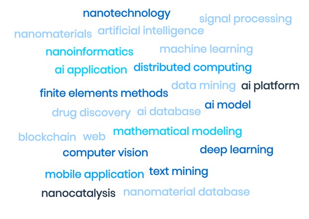 Keywords: deep learning, machine learning, artificial intelligence, mathematical modeling, multi-physics, nanoinformatics, finite element method (FEM), text mining, data mining, computer vision, signal processing, blockchain, distributed computing, web and mobile applications, nanotechnology, nanomaterials, nanocatalysis, drug discovery, AI platform, nanomaterial database, AI databases, AI models, AI applications
